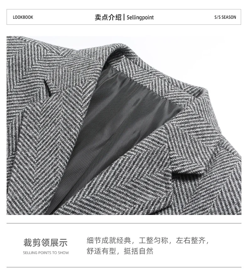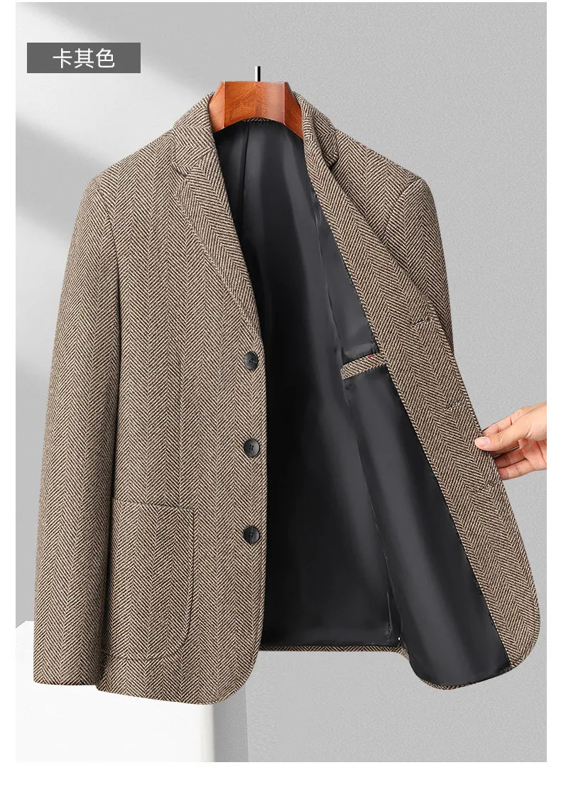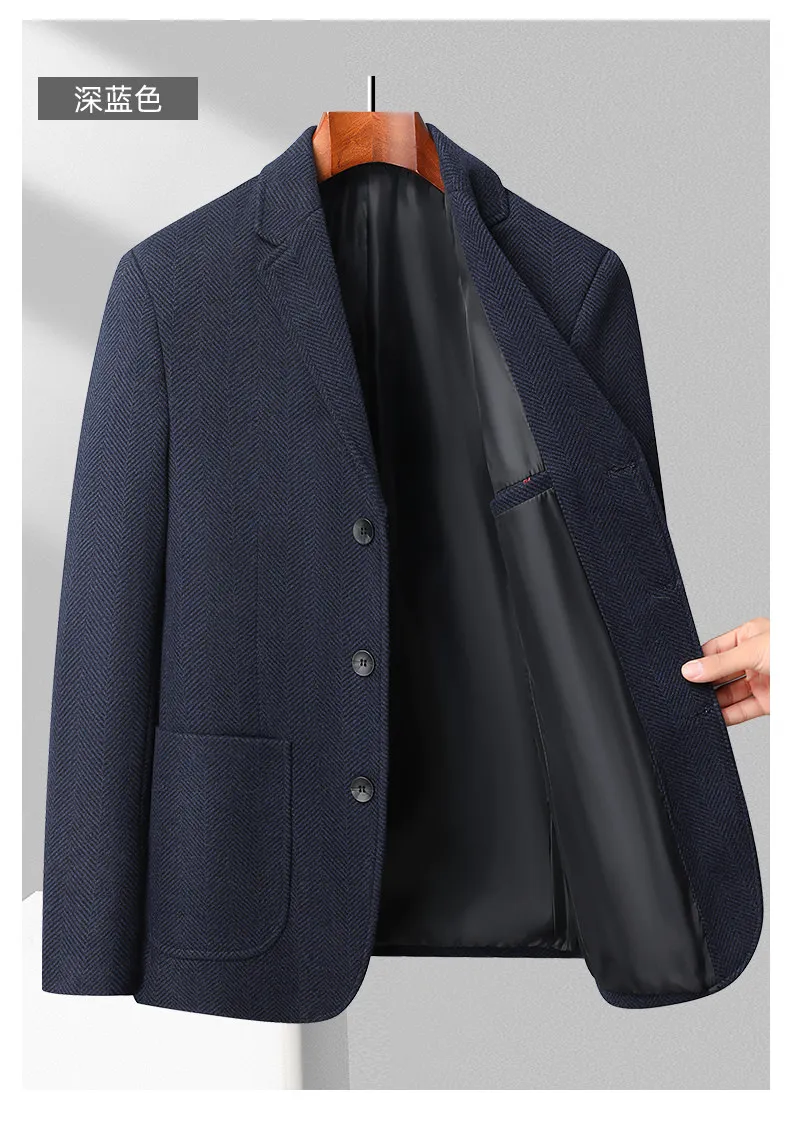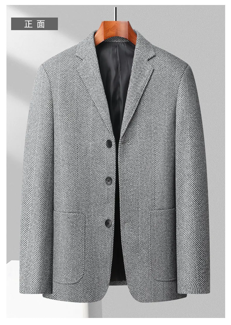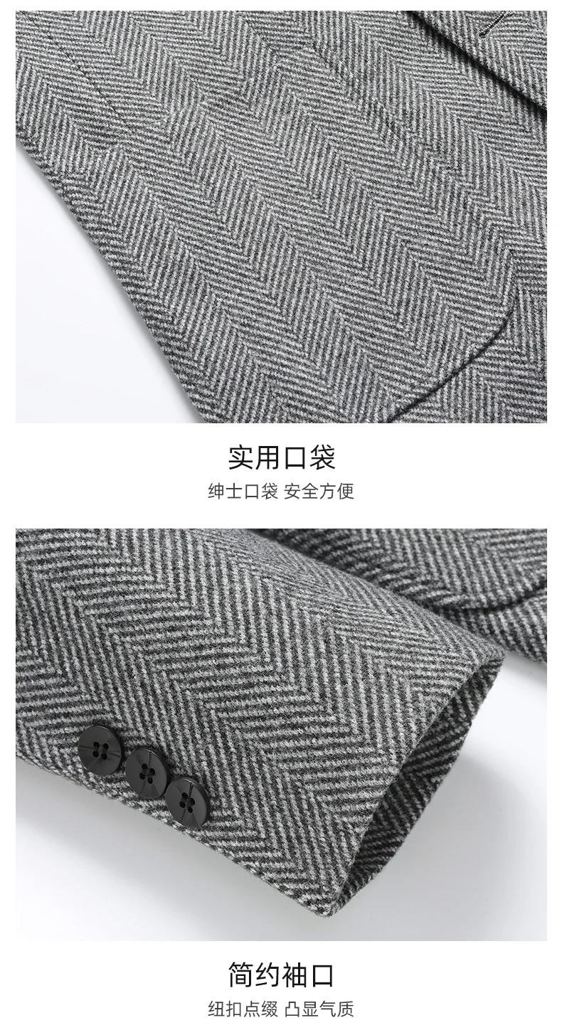 Spring and Autumn New Herringbone Wool Long-sleeved Suit Four Colors Exploded Three-grain Single-breasted Suit Men