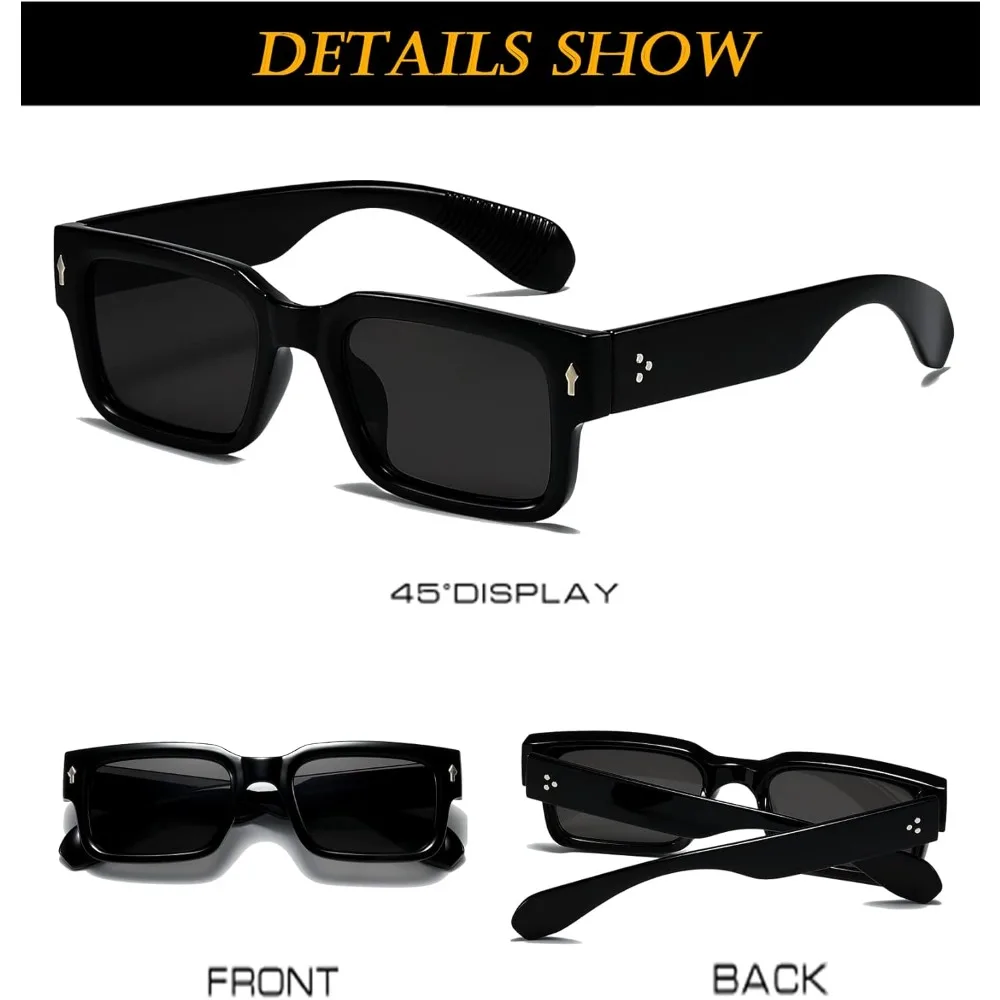 Unisex Square Frame Sunglasses – Thick Acetate Frames with UV400 Protection & Anti-Slip Temples | Classic Rectangular Style for Men and Women