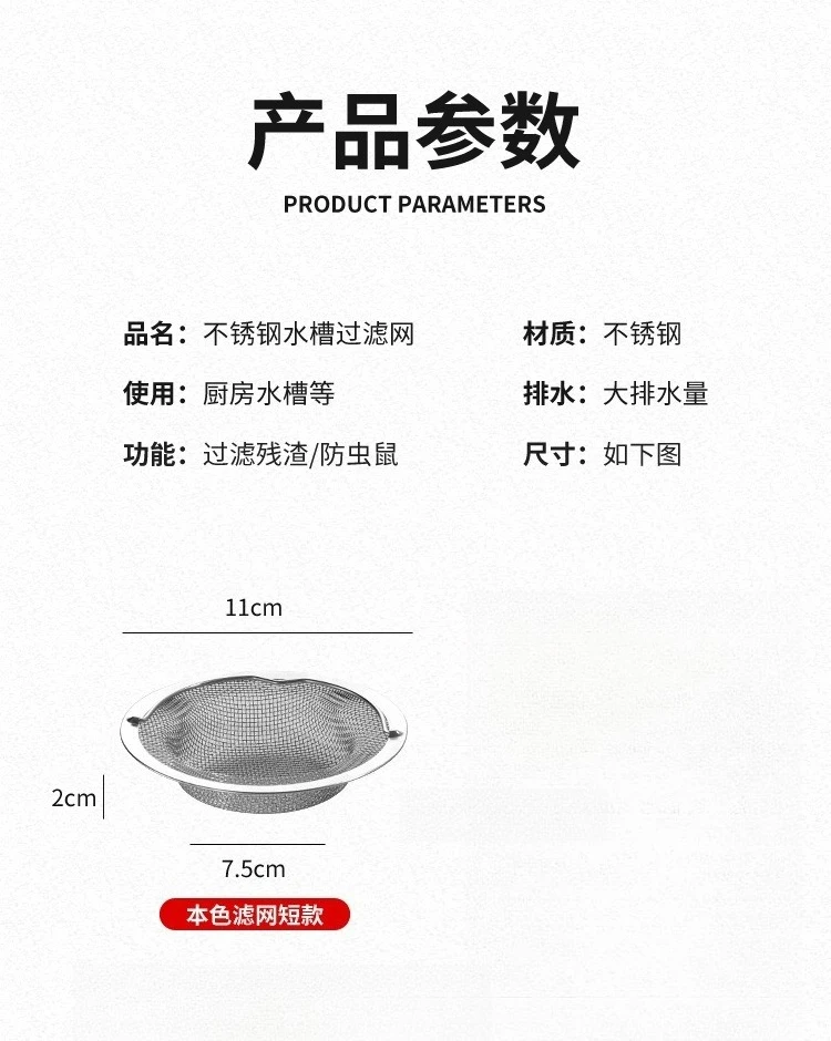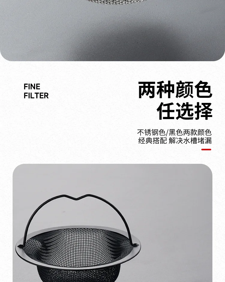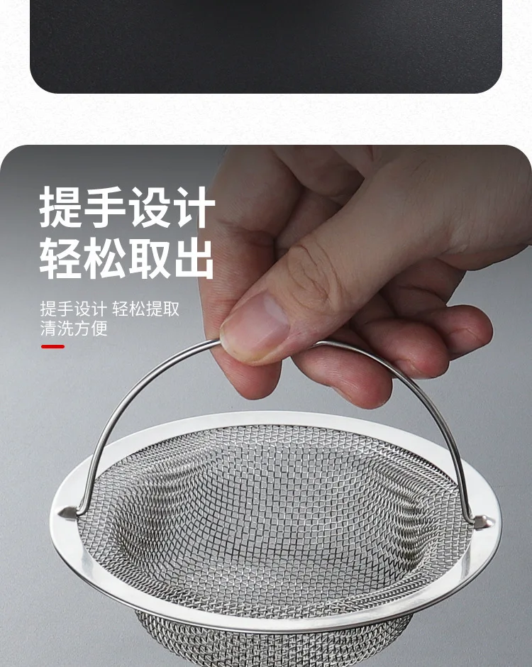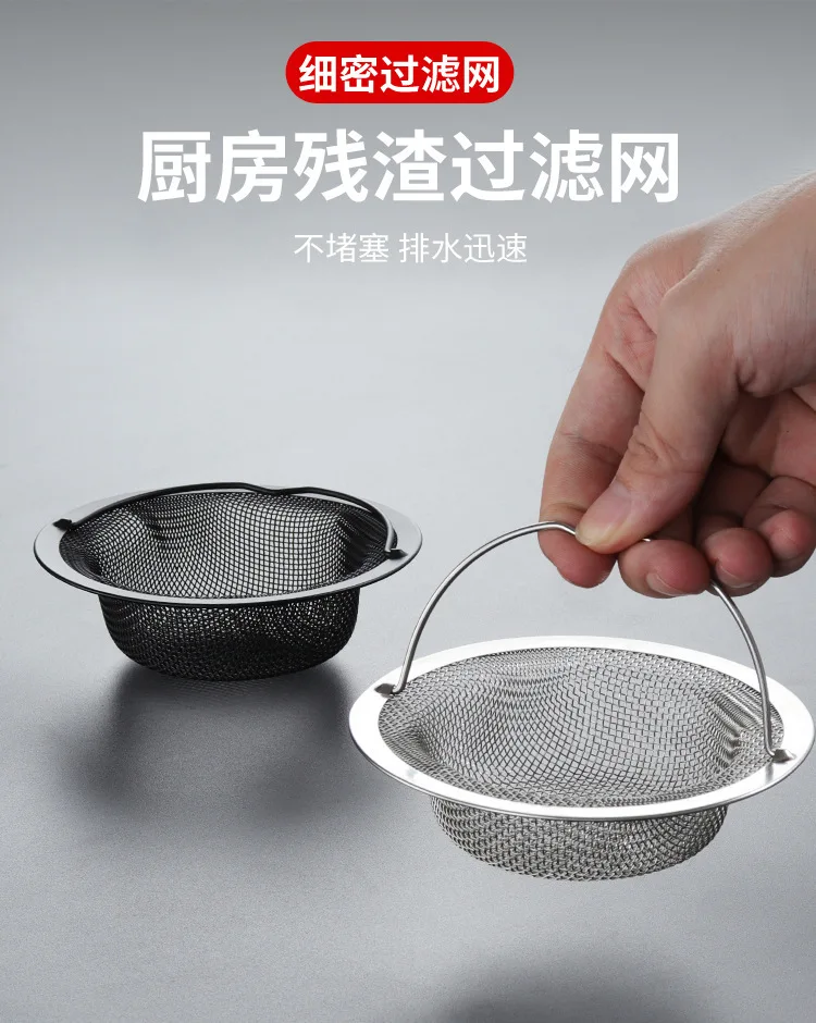 Stainless Steel Sink Strainer with Handle Rustproof Mesh Drain Filter Kitchen Bathroom Prevent Clogging Wash Fruits Vegetables