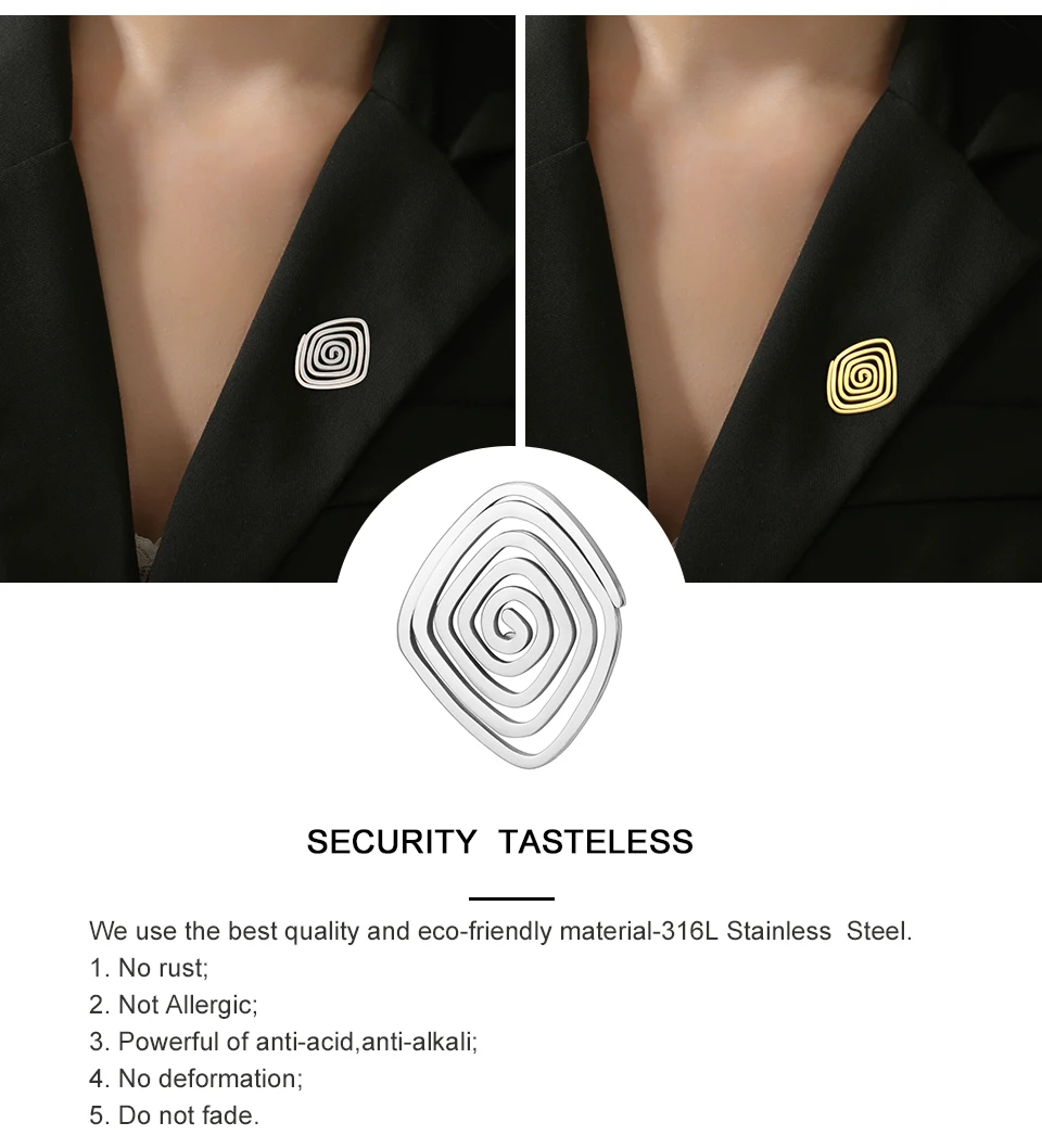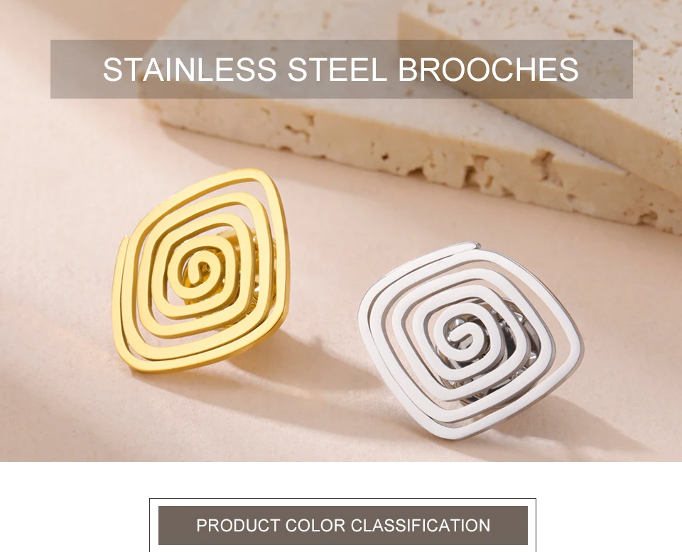 3 reviews for Stainless Steel Spiral Swirl Brooch for Women Men Gold Plated Geometric Suit Lapel Pin Trend Jewelry Accessories Gift Wholesale