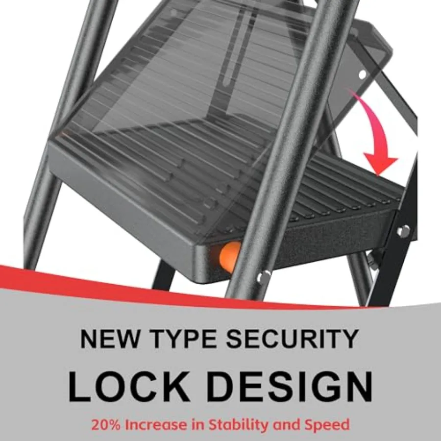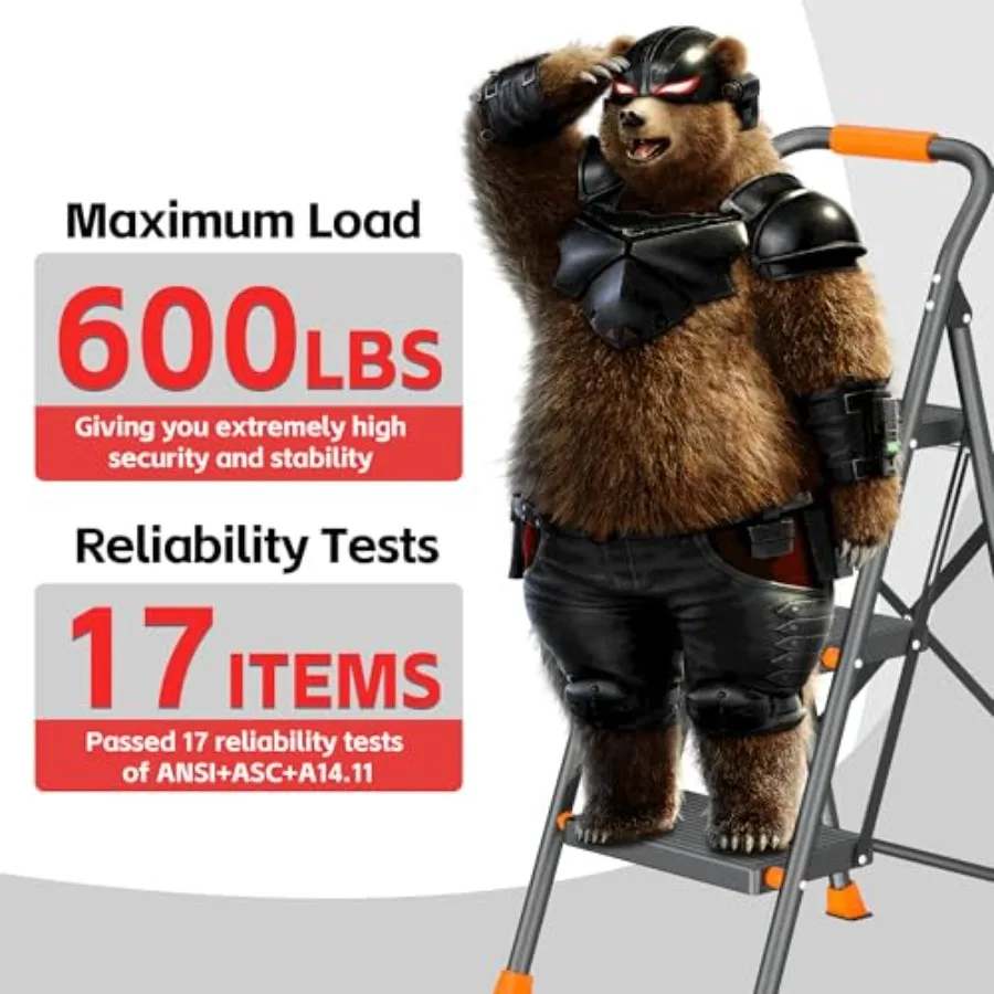 Step Ladder Foldable Folding Stool – for Home Adults Kitchen 3 Stepping Extension Tall Heavy Duty with Handrails – Closet Steps