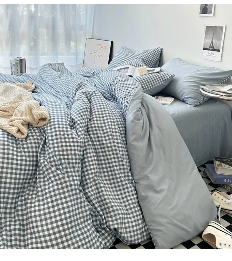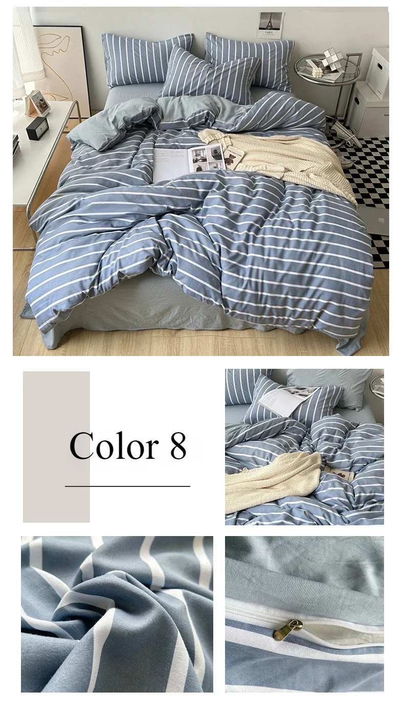 6 reviews for Stripe Bedding Comforter Set with Pillowcase bed sheet Single Full Size Bed Linen Duvet Cover Set Queen/King Double Single Bed