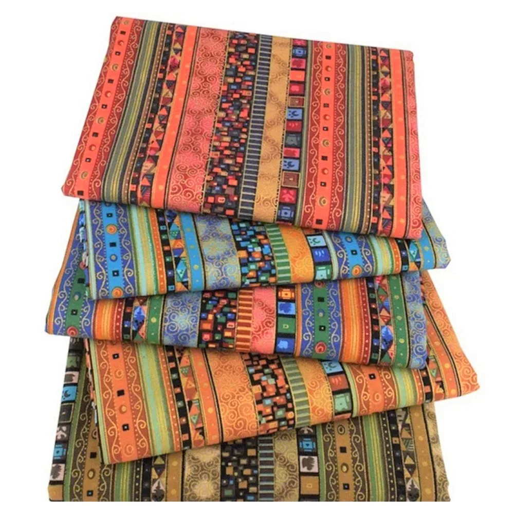 Tribal Ethnic Cotton Linen Vintage Printed Bronzing Fabric For DIY Handmade Sewing Quilting Upholstery Household Tablecloth Sofa Dress Cushion Curtain Pillowcase Bag Craft Decor Material