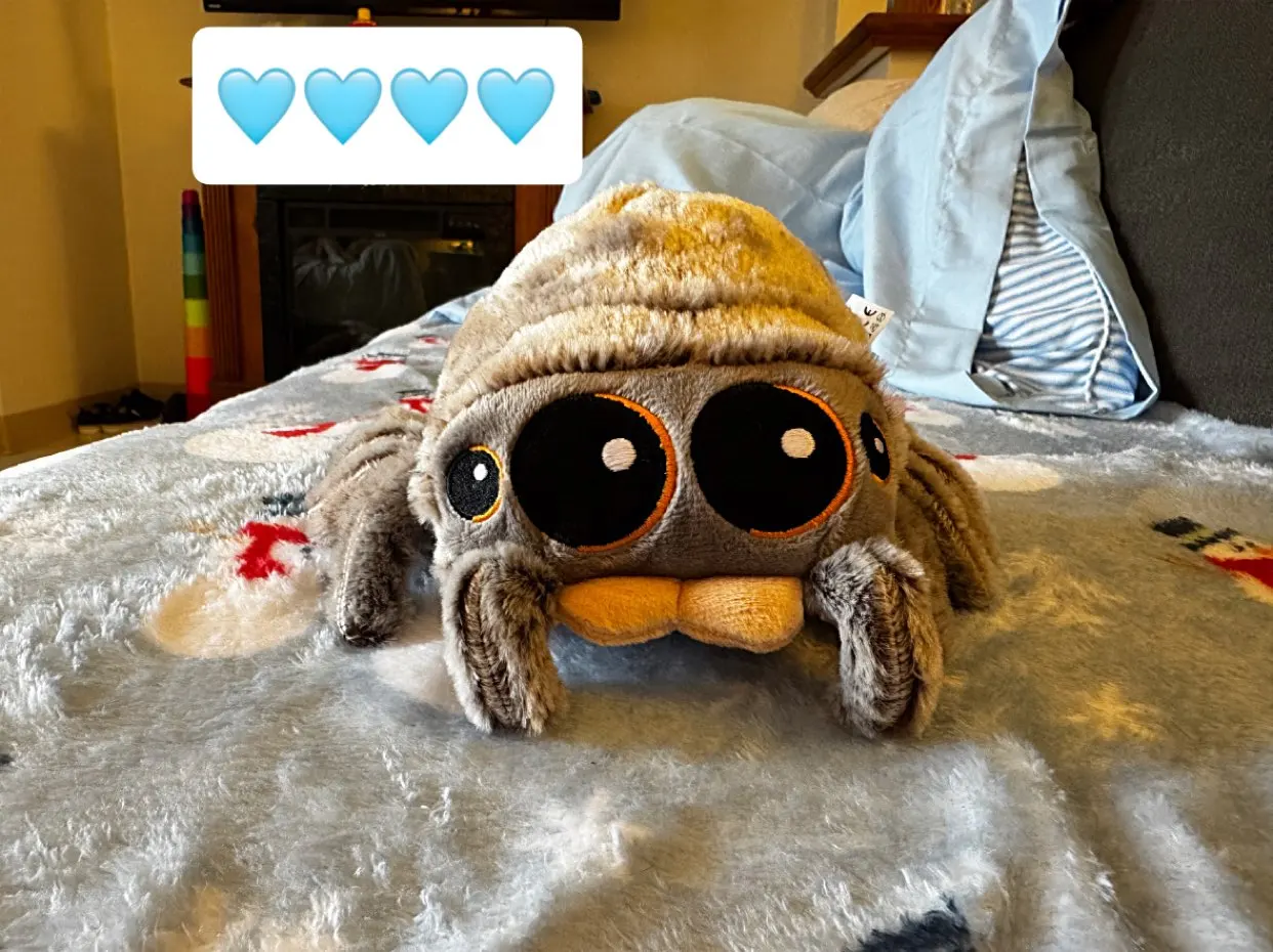 For the surprise reveal, i placed it between my daughter’s pillow and blanket with only the legs visible. She literally screamed and ran out of her room crying. Those legs are that convincingly realistic. But after i shown her it’s just lucas the happy cute spider, she absolutely loves it. It is currently her favorite bedtime companion.