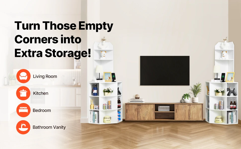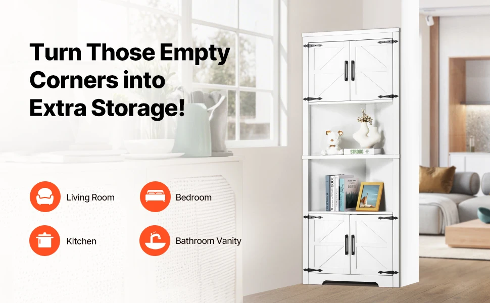 Maximize Your Corner Space: This corner storage cabinet is designed for 90° corner spaces, making it the perfect solution for your living room, dining room, bedroom, or study. It helps you fully utilize corner areas, adding more storage and turning those overlooked spaces into stylish, functional corners of your home.