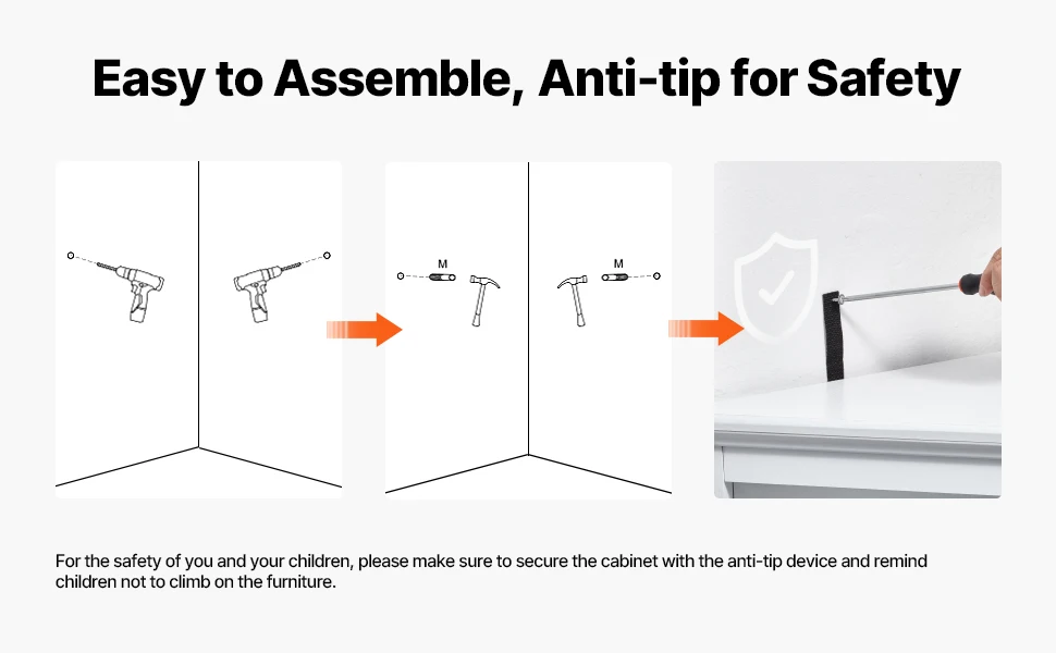 Sturdy and Reliable: Built with thick particle board, each shelf can hold up to 44 lbs (20 kg), so even a small toaster oven is no problem. We’ve also included a tip-over prevention device—be sure to install it for extra peace of mind. Whether you need a corner shelf cabinet or extra storage, this piece will stay secure and reliable.