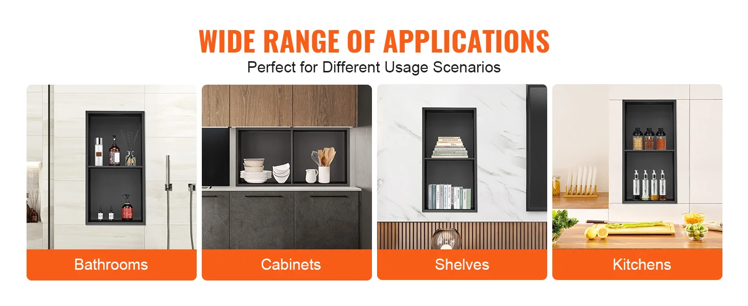 • Waterproof Seal: SucceBuy shower niche is crafted with precision machine bending and full welding sealing, creating a seamless surface with 100% waterproofing. This not only shields walls from water damage, prolonging their lifespan, but also effectively prevents wet from penetrating into the walls, maintaining a dry and hygienic indoor conditions.