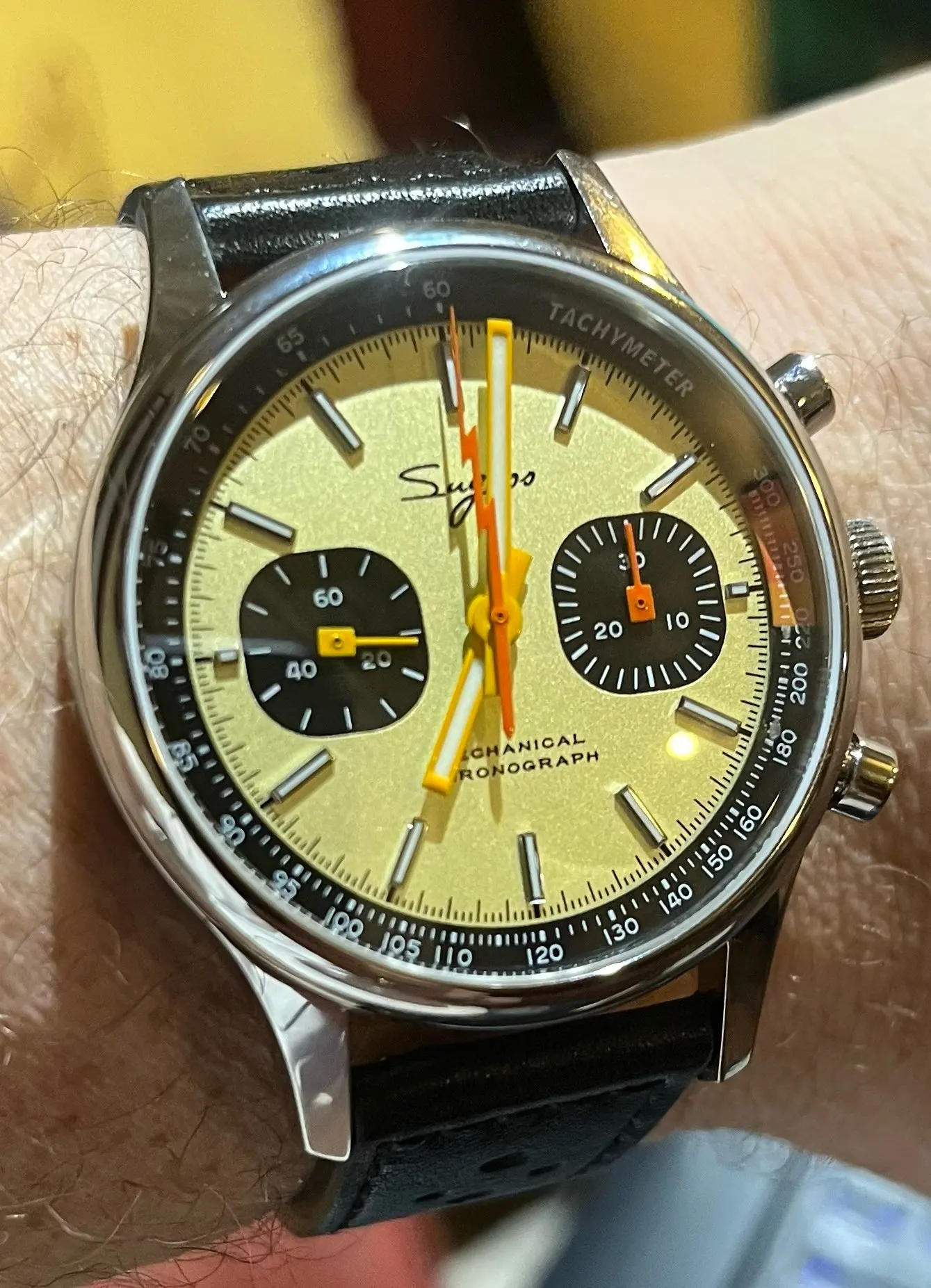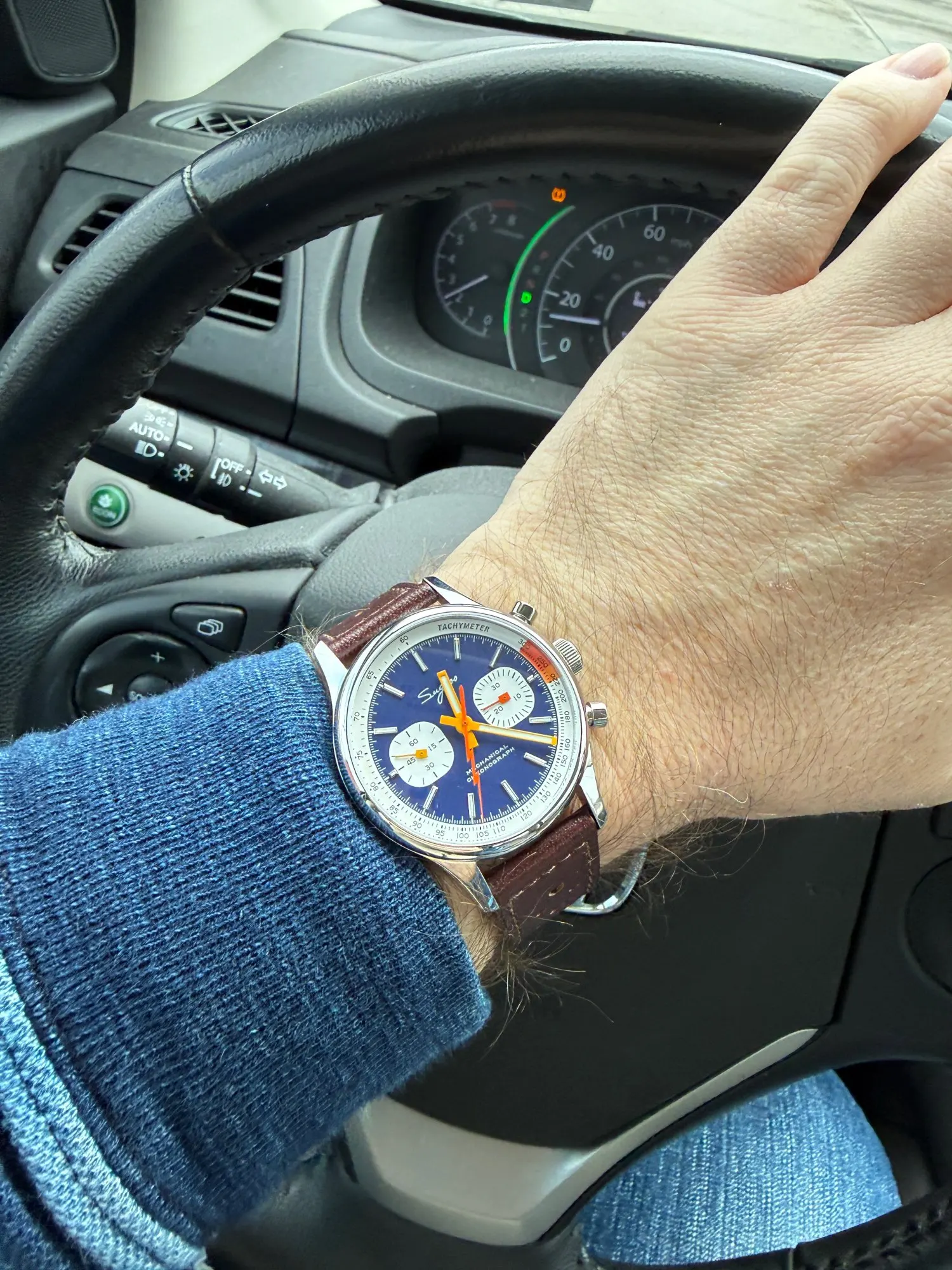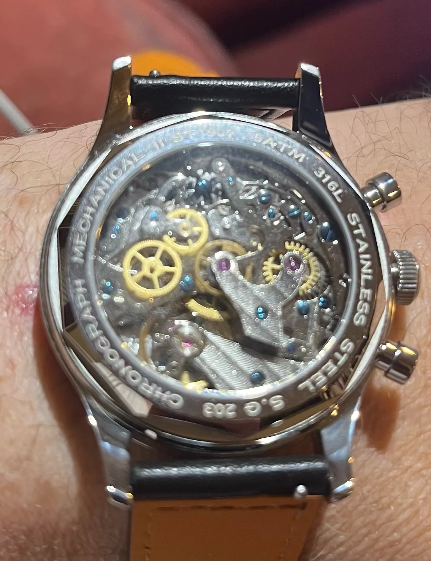 Great watch, beautiful movement. High quality materials. A must-have mechanical chronograph in every collection. Incredible price. Love it.