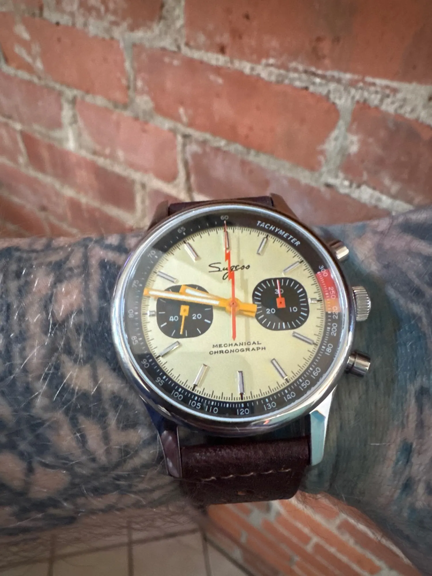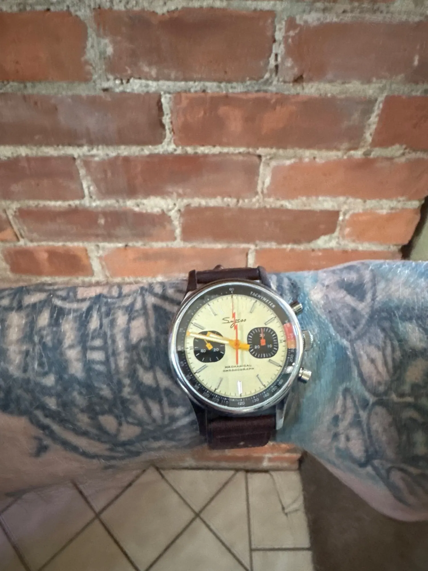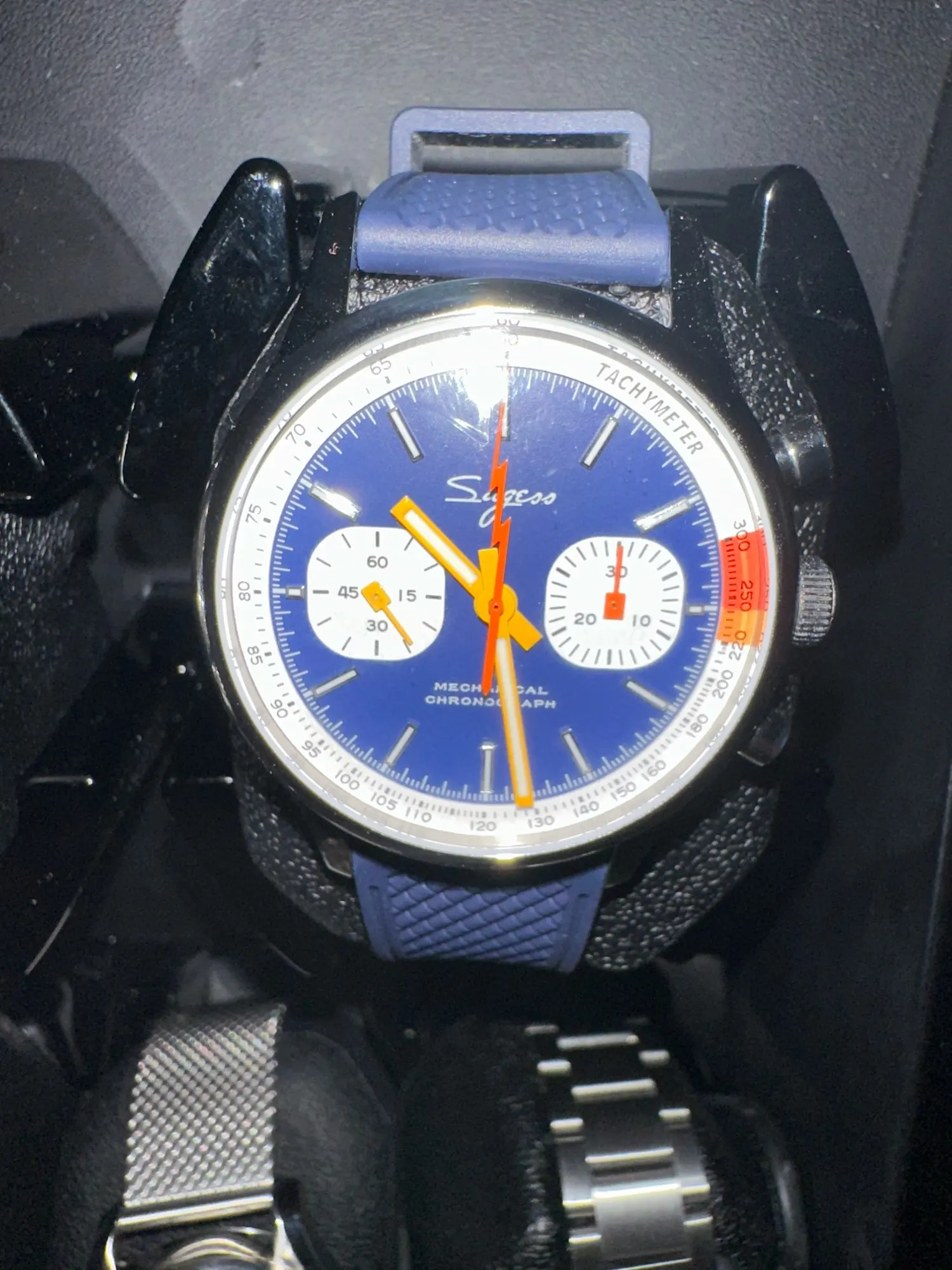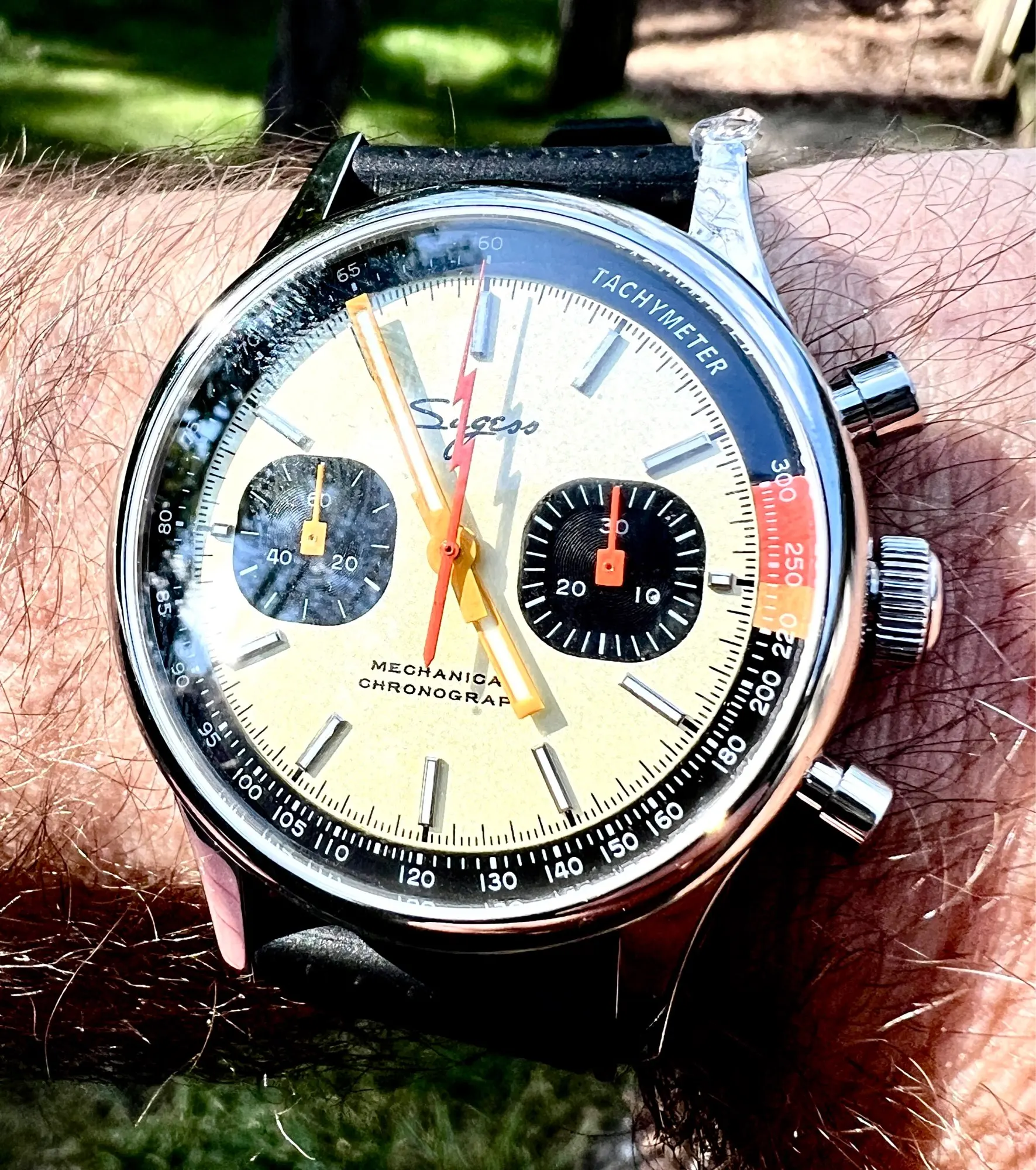 Great watch, beautiful movement. High quality materials. A must-have mechanical chronograph in every collection. Incredible price. Love it.