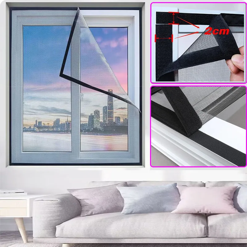 Summer, simple, black, mosquito net with multiple sizes to choose from, adhesive 2cm tape, window screen, curtain mosquito net
