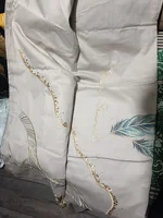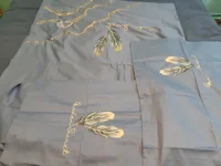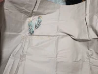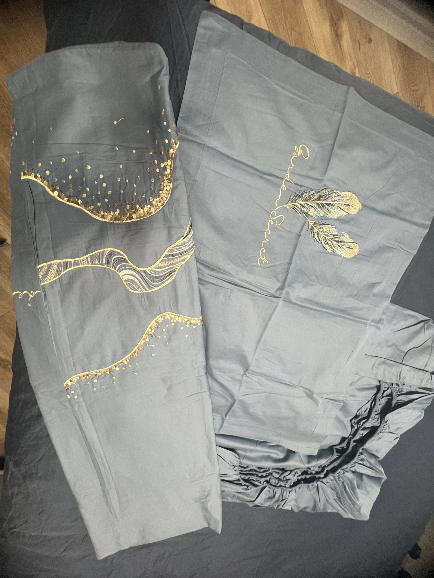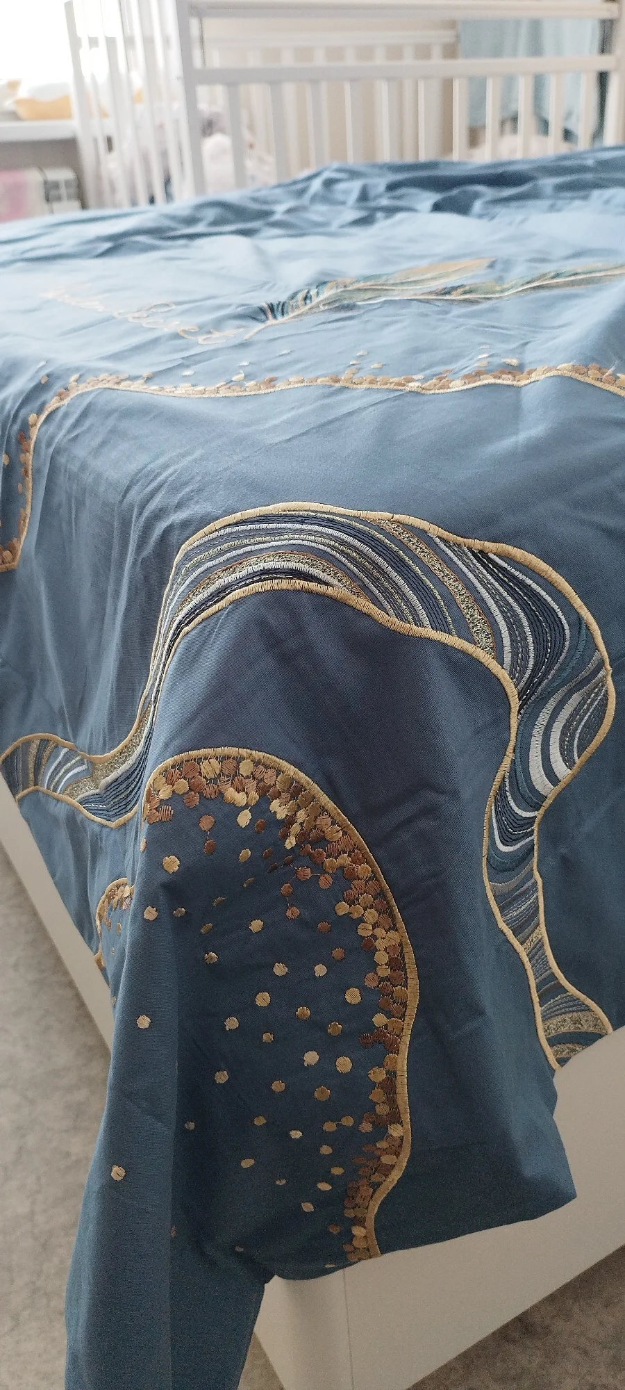 Buying a bed linen in king size, what can I say? This is the best bed linen! The fabric is completely natural, rooftop, the quality of the fabric is at the highest level, it is not really beautiful embroidery, the pocket for the blanket is stitched perfectly and very conveniently located, it is not abandoned in the eye, neatly hid under the edge, very pleasant bed linen with touch, the color of the fabric is perfect, no flaws, the stitching is perfectly even, bed linen fully matches the size and description, I definitely recommend this linen for purchase.