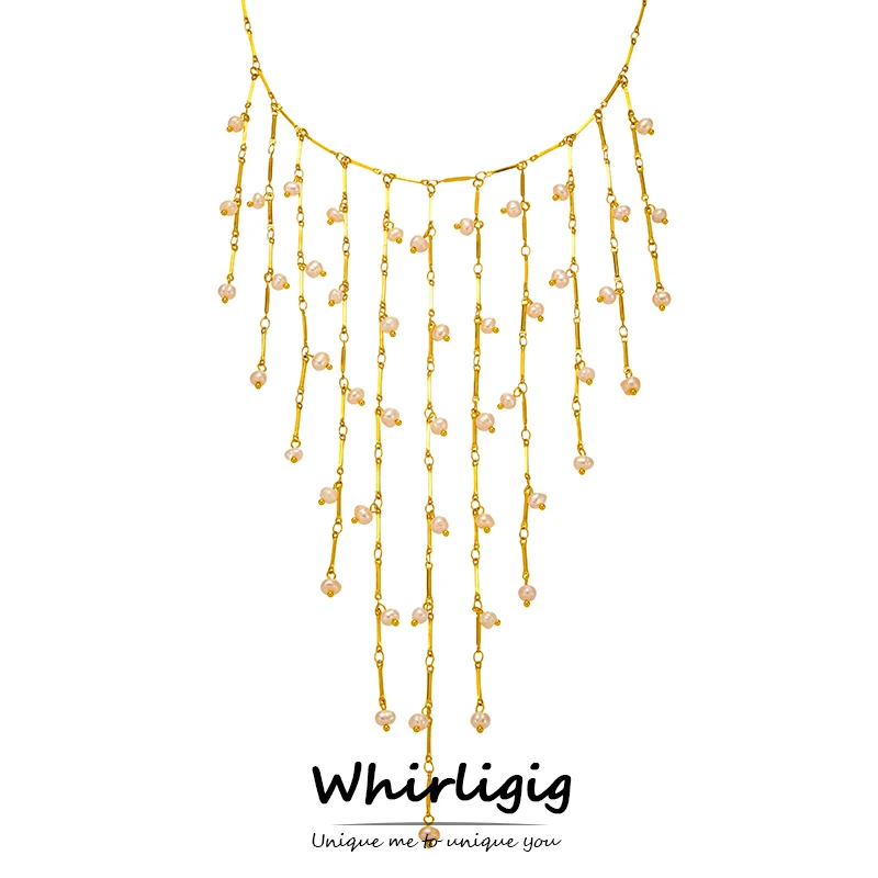 Sweet Collar Cascade Fringe Necklaces 18k Gold Plated Waterproof Non Tarnish Stainless Steel Long Tassels Necklace For Women
