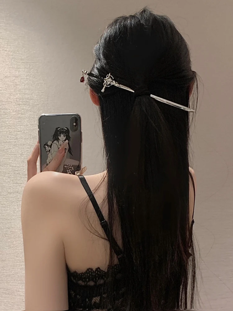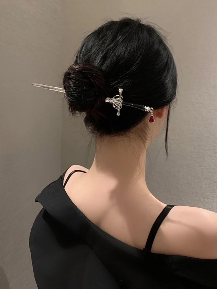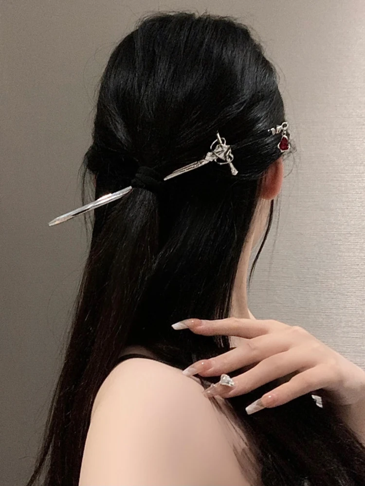 Sword Hairpin Headdress For Women Girls Chinese Style Vintage Hair Sticks DIY Hairstyle Ponytail Holder Hair Accessories Jewelry