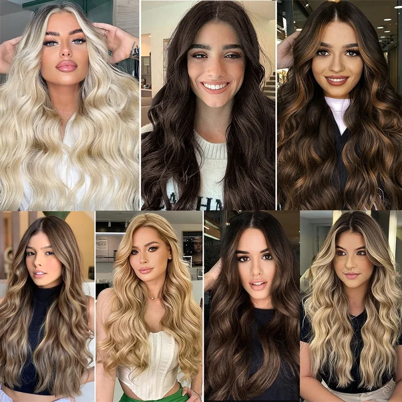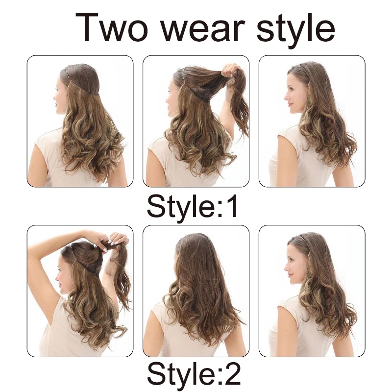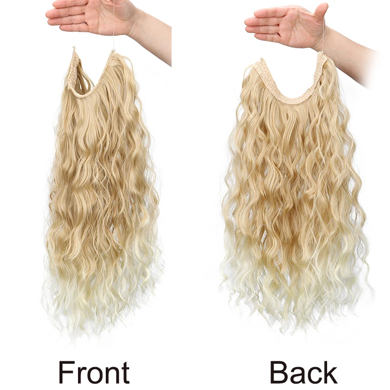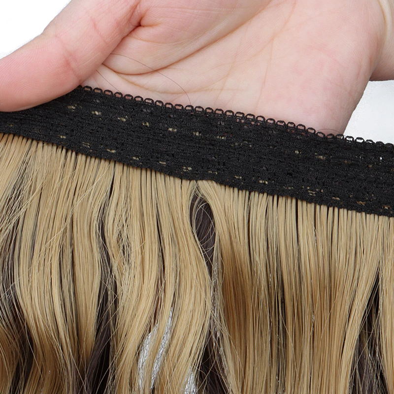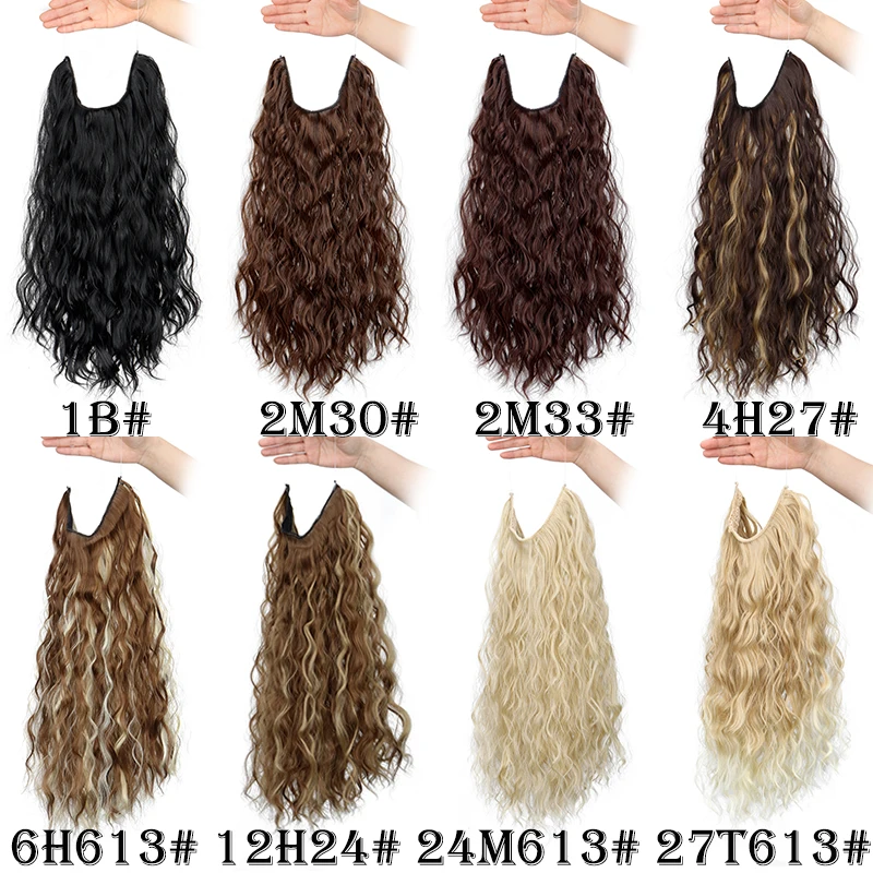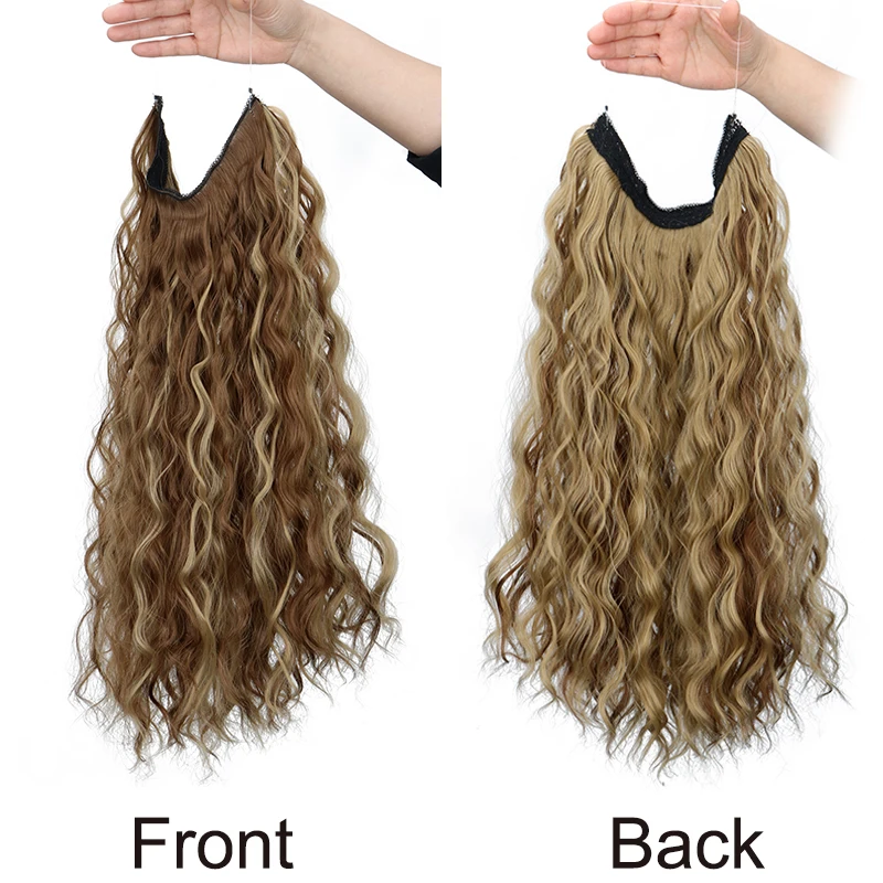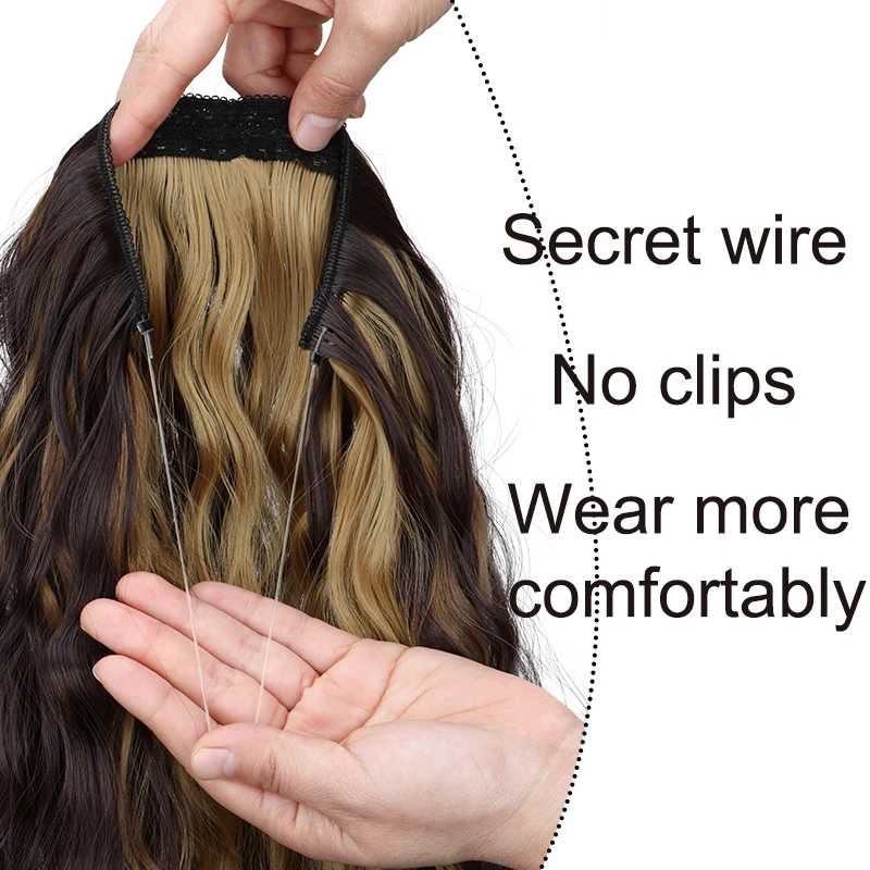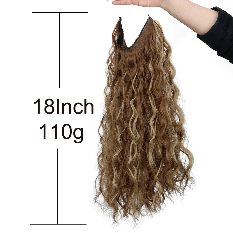 Synthetic 18Inch Long Wavy Curly Hair Extension Invisible Hairpice Fish Line Black Brown Hair for Women