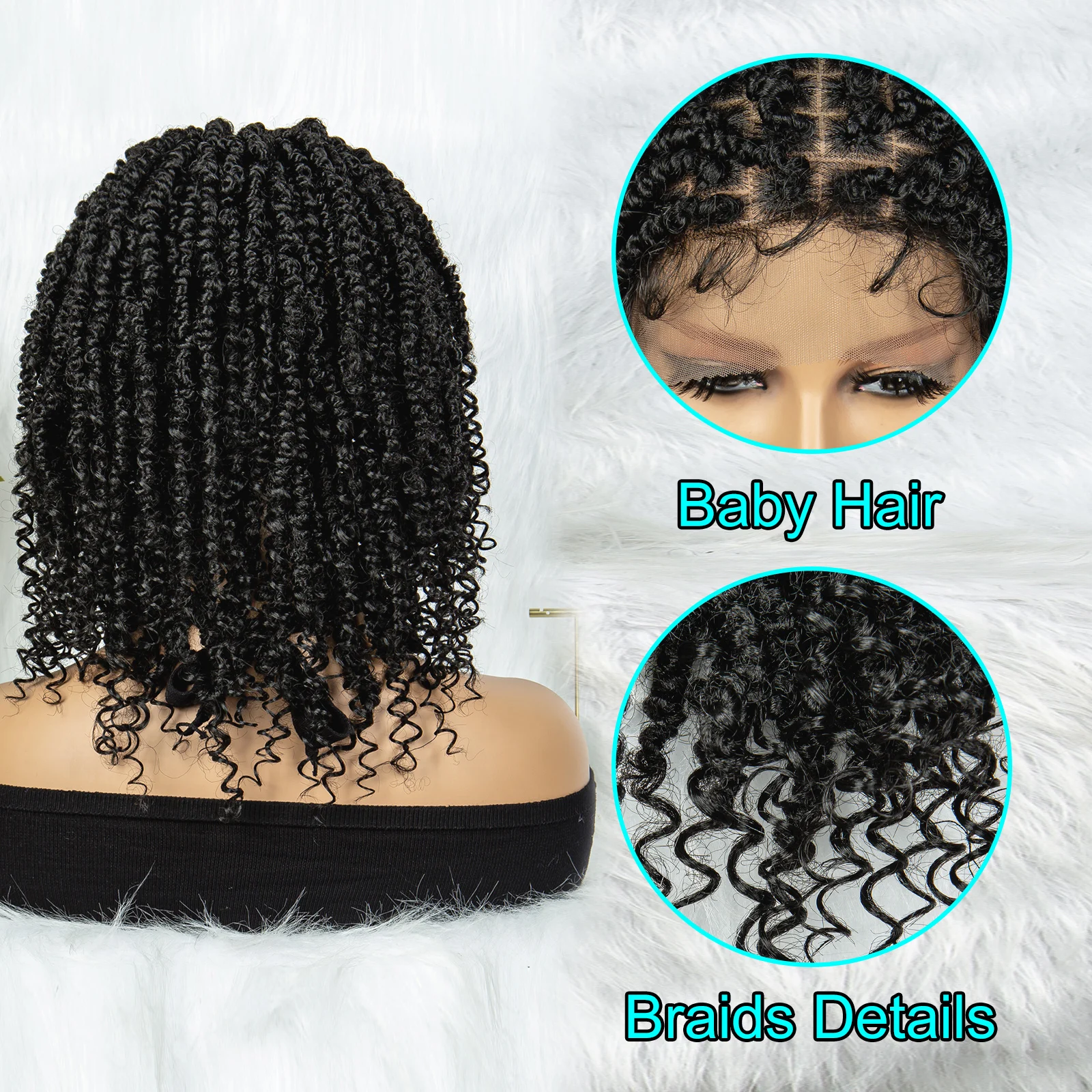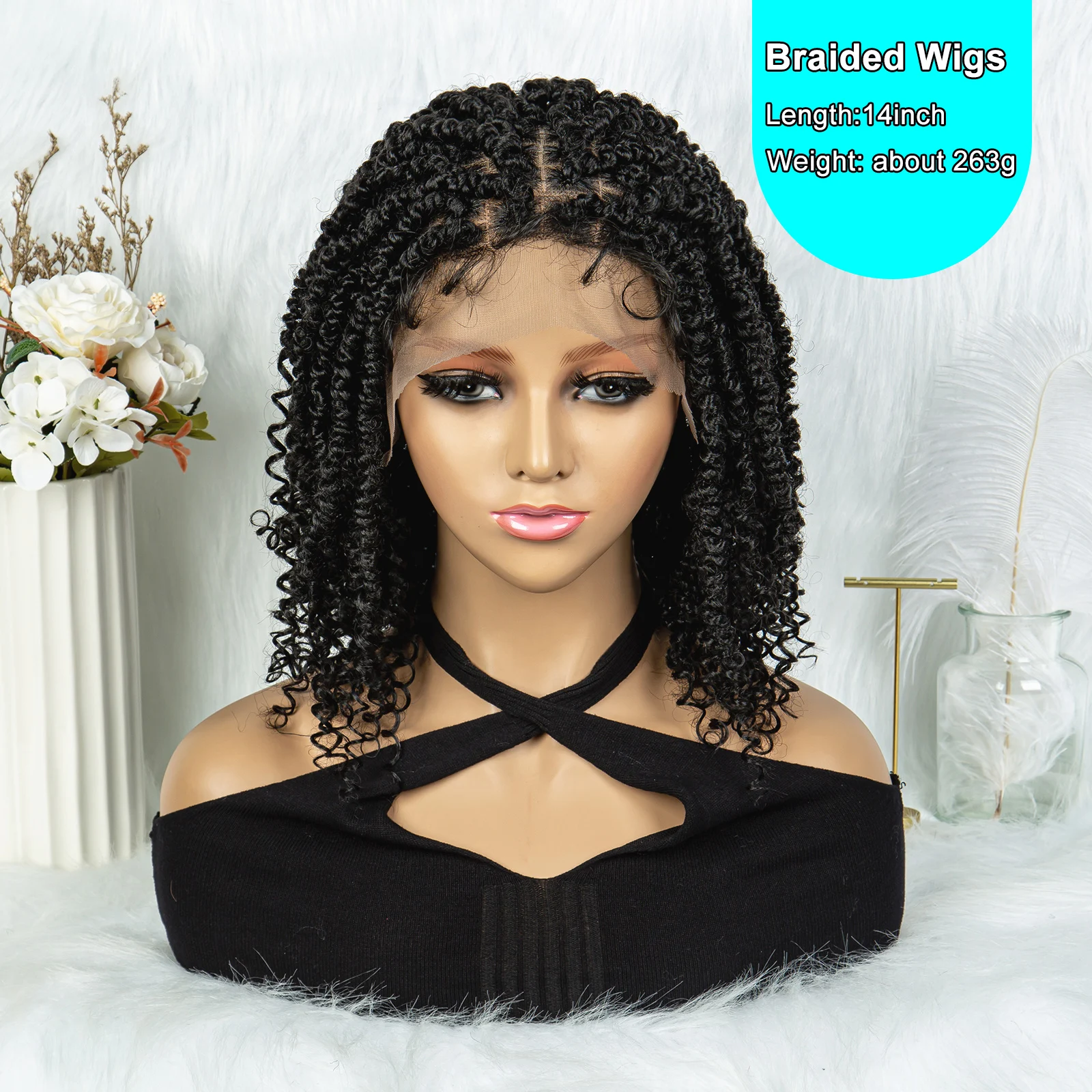 Synthetic Lace Front Wig Butterfly Locs Braided Wigs Dreadlock Wig 14 inches Short Knotless Wigs for Black Women Synthetic Wig