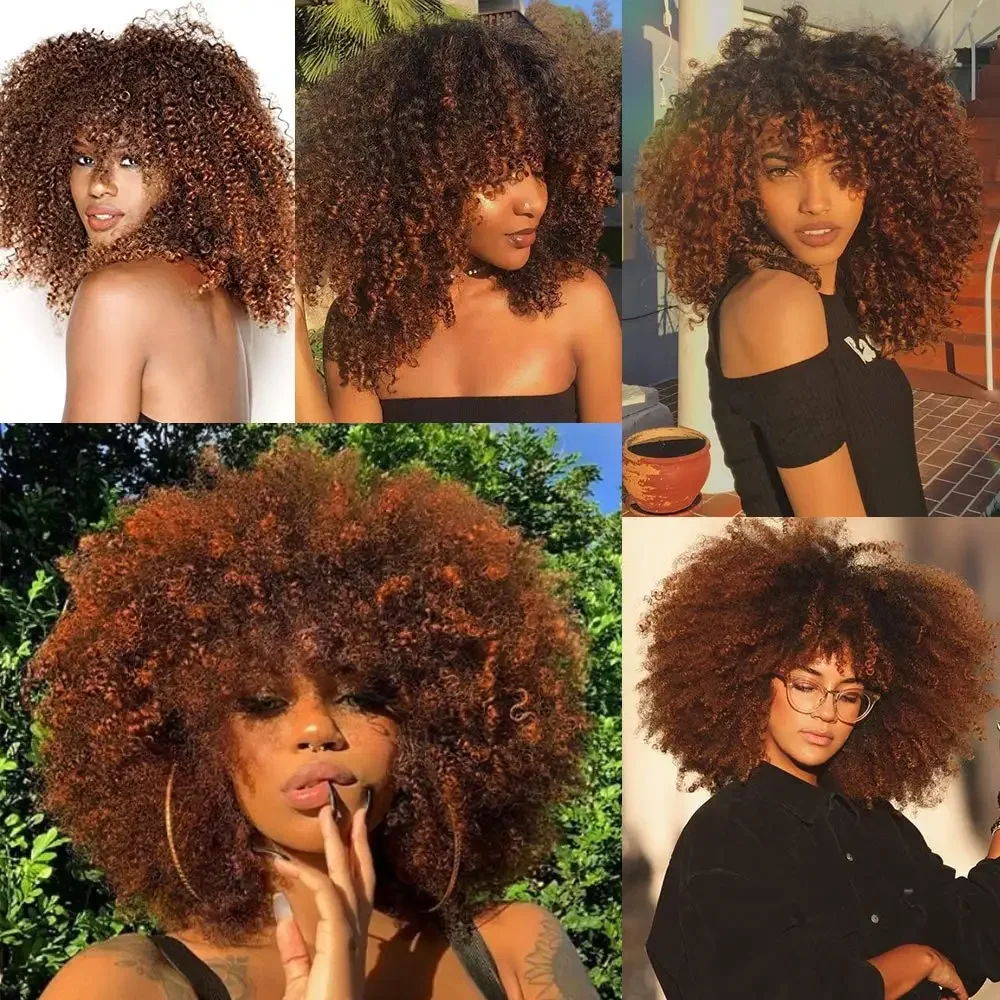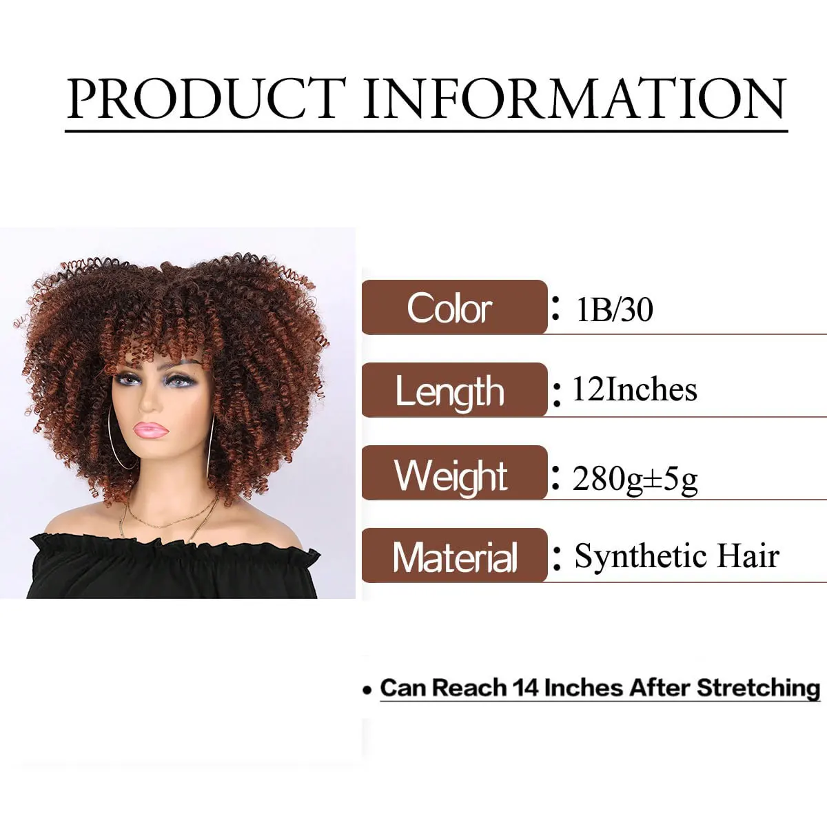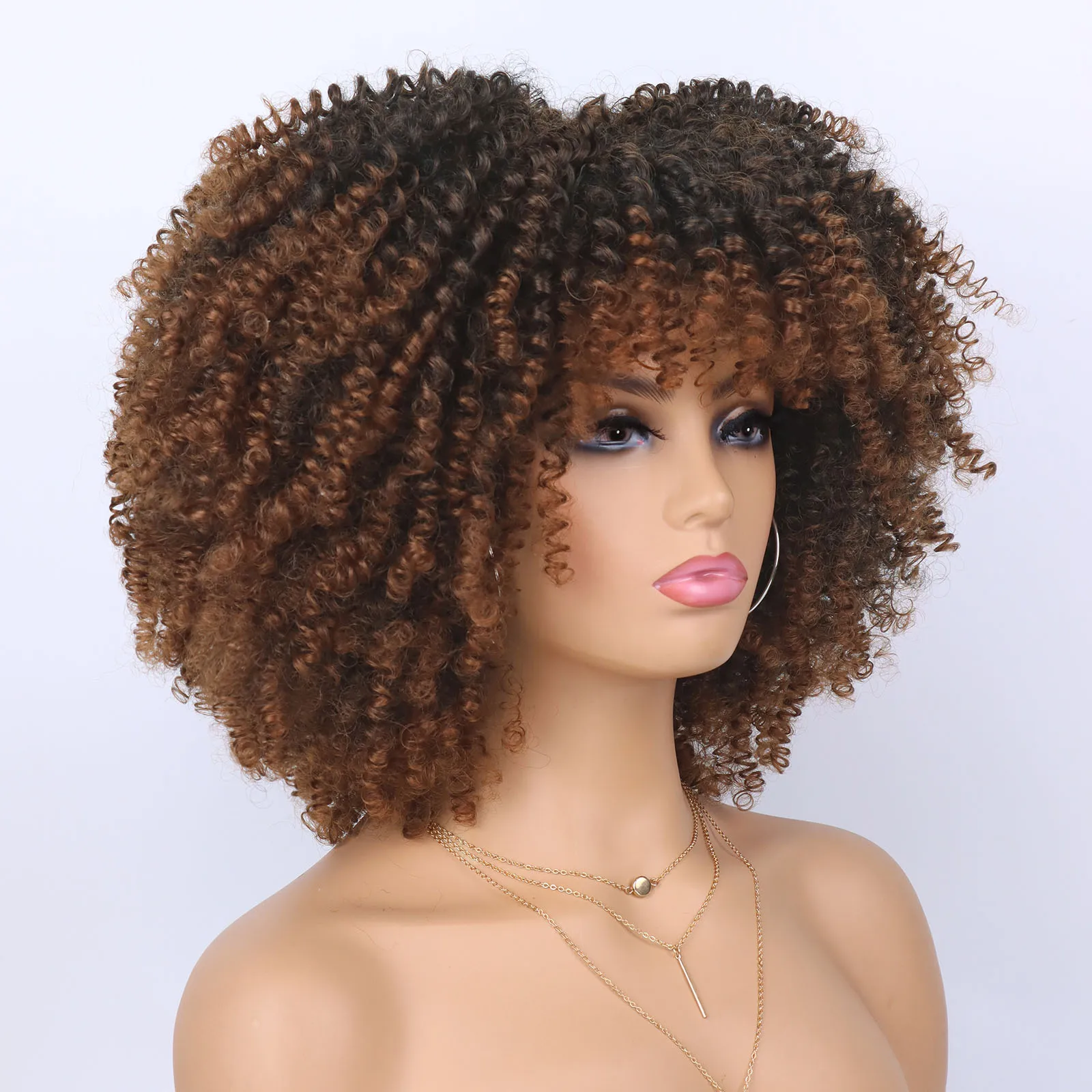 Synthetic Short Afro Kinky Curly Wig With Bangs For Black Women High Temperature Daily Party Headgear with Clips Cosplay