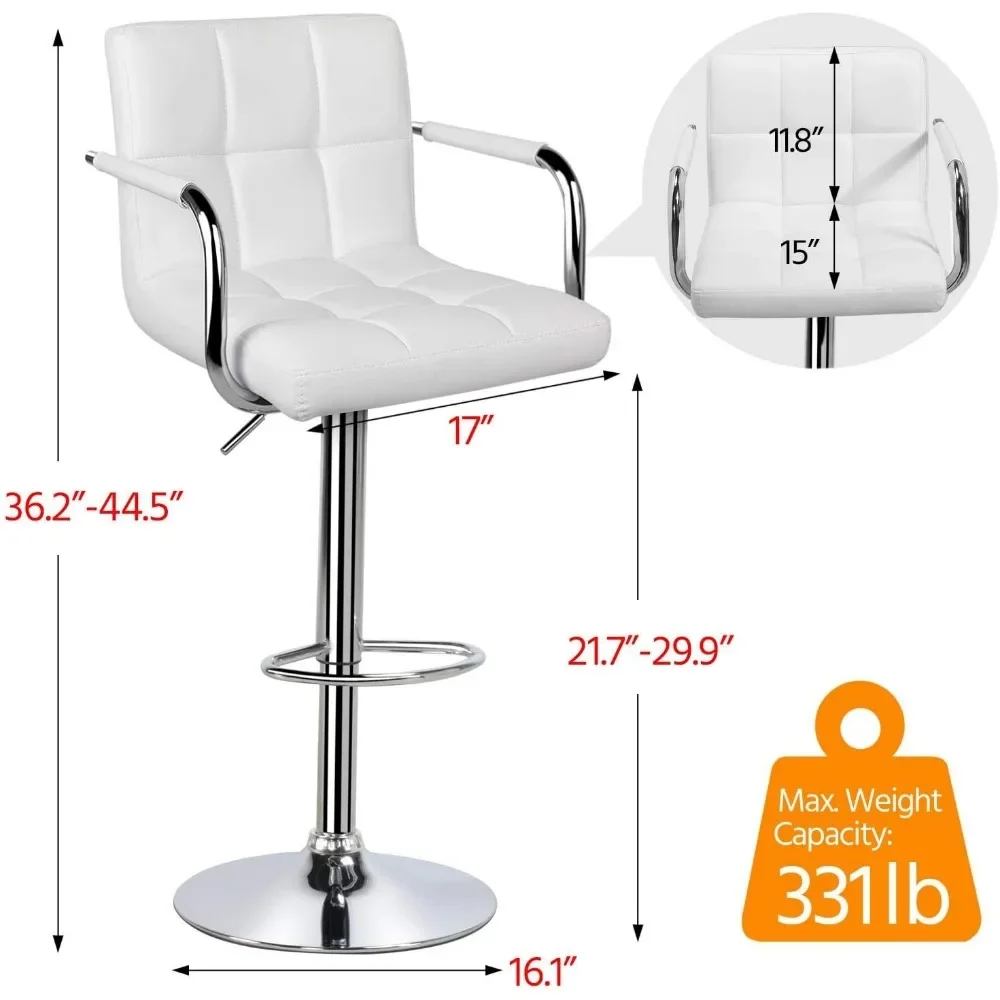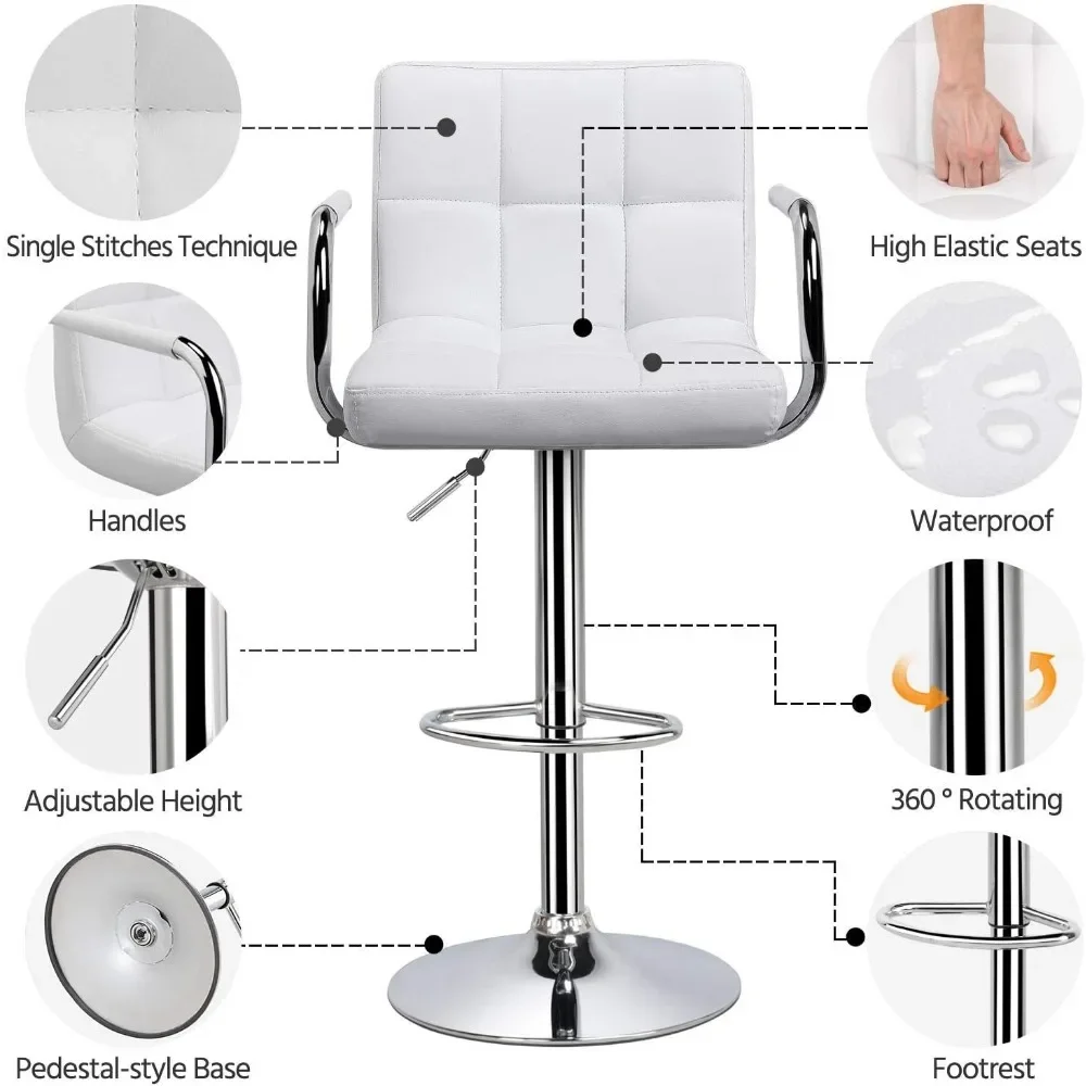 【Stylish】The glossy metallic leg and faux leather seat give the stools a luxurious appearance. These simple and fashionable stools add a sense of elegance to your room, which can perfectly suit kitchen counters, bars, pubs, and cafes.