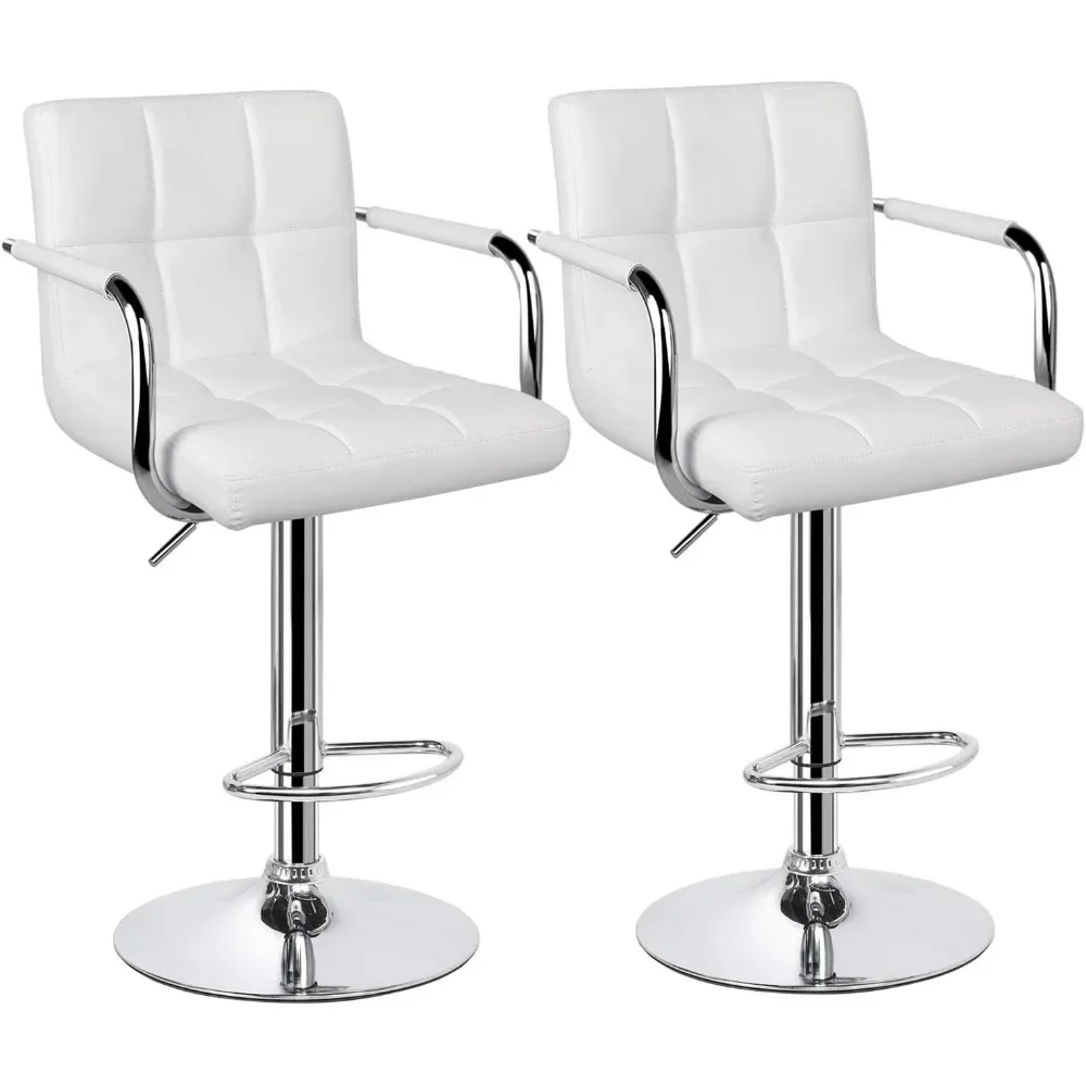 【Super Cozy】Our 2pcs bar stool set has a comfortable foam pad that you will not feel tired or stiff sitting on it for a long time. Together with extra armrests and a footrest, it is designed for making you sit in a relaxing way.