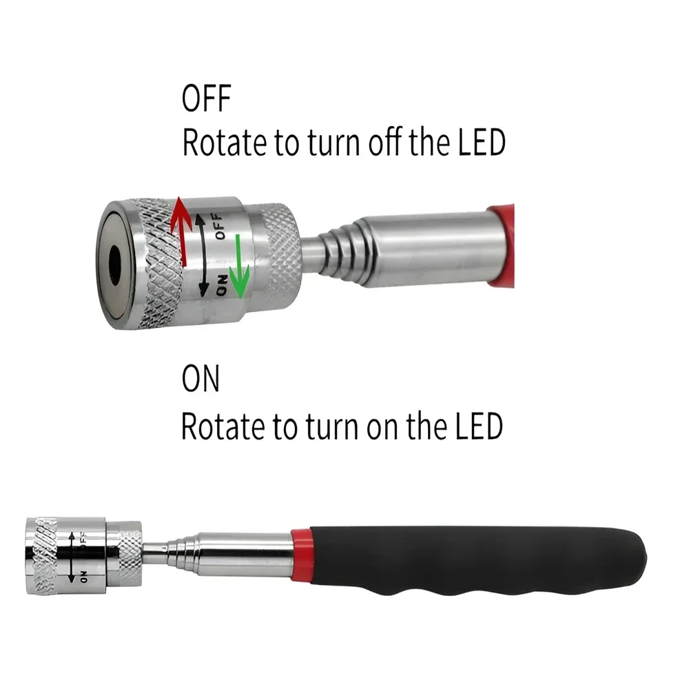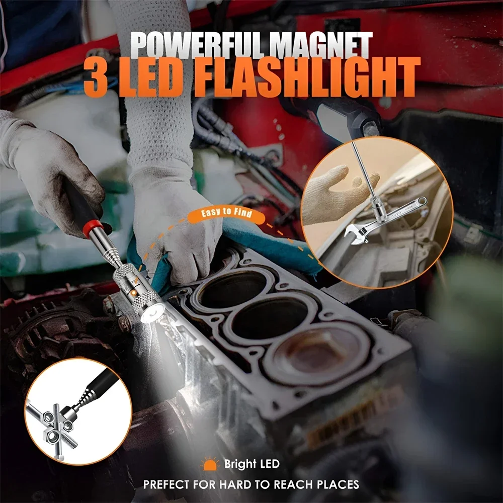 Telescopic Magnetic Pen with LED Light Extendable Pickup Rod Mini Portable Magnet Tool for Screws Nuts Bolts Metal Parts