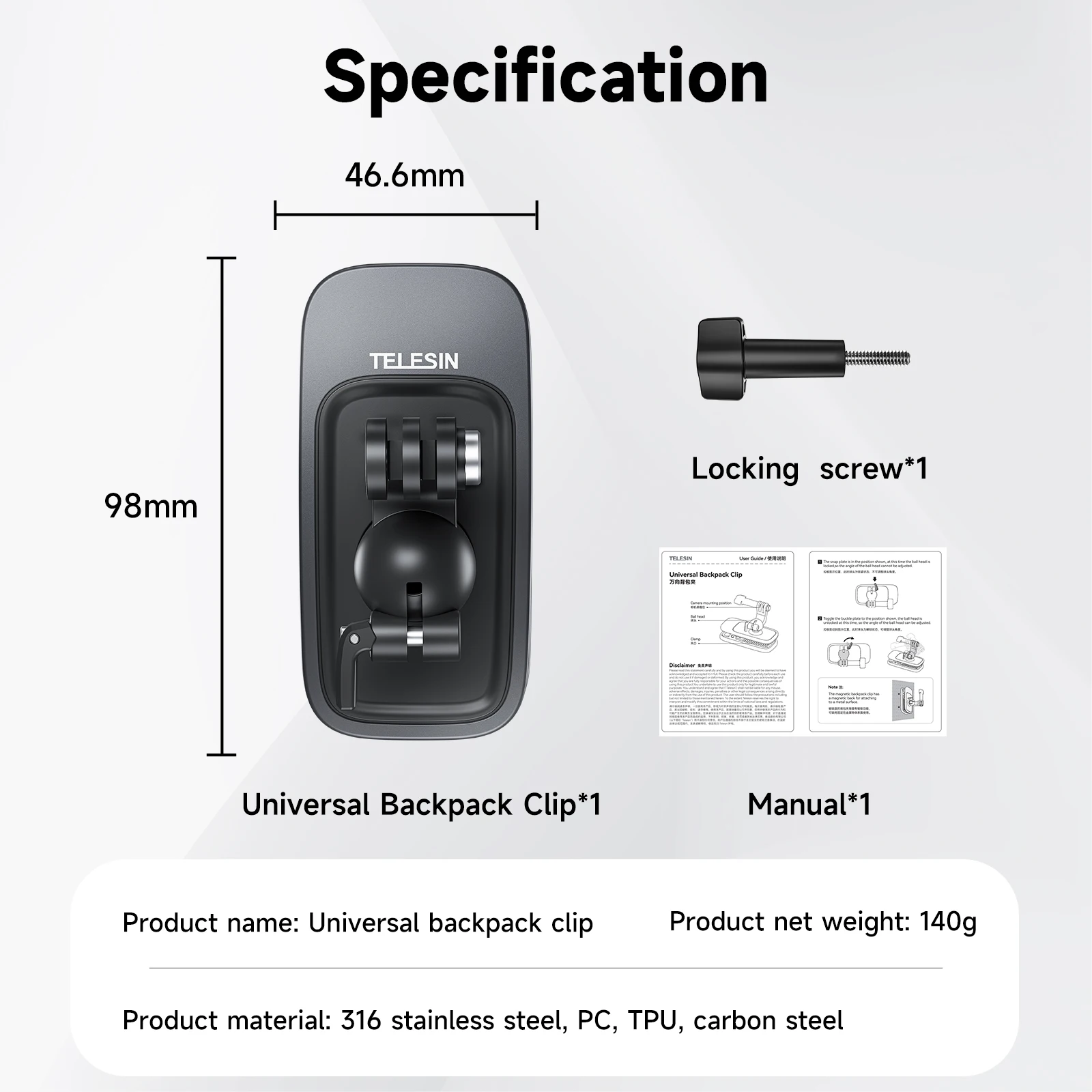 18 reviews for TELESIN 360° Rotation Magnetic Backpack Clip Clamp Mount for GoPro Hero 13 12 11 10 9 8 7 Insta360 DJI Action Camera Accessories