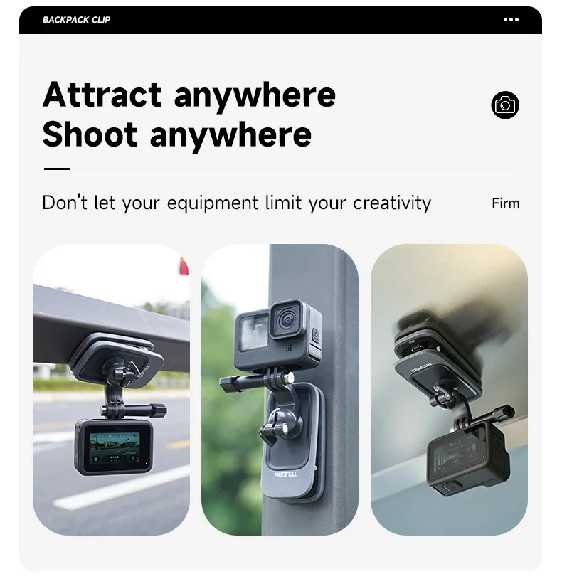 TELESIN 360° Rotation Magnetic Backpack Clip Clamp Mount for GoPro11 Hero 13 12 11 10 9 8 7 Insta360 X3 GO2 GO3 DJI OSMO Action 3 4 Camera Accessories
