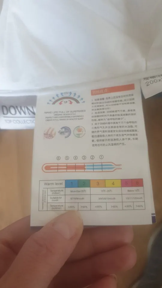 Among the things I’ve purchased so far, this seems to be the best quality goose down. There’s a zipper on the side to check the contents, and you can see what’s inside, but the packaging is a bit poor.