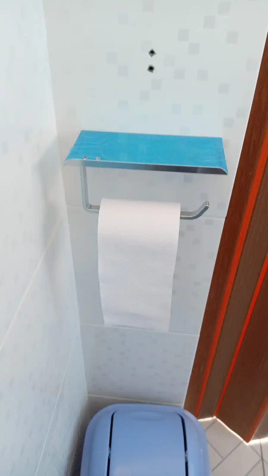 Below is the toilet paper, it doesn’t get in the way, it doesn’t fall.