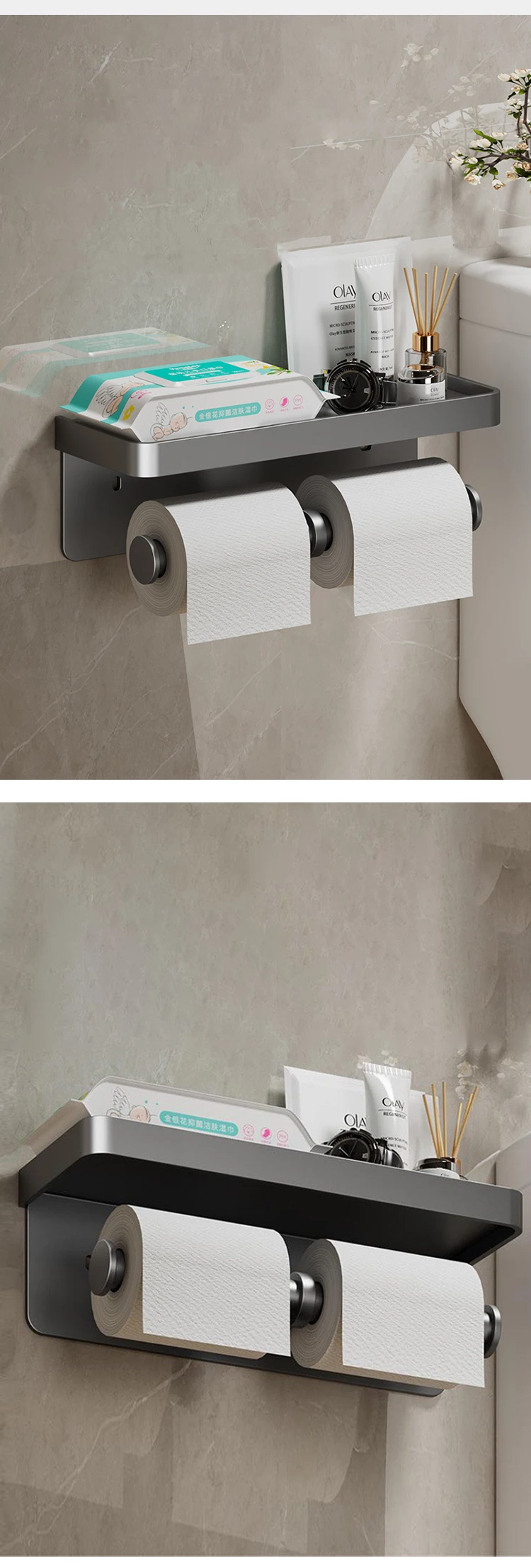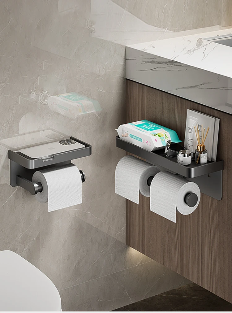 Toilet Paper Holder Wall-Mounted Aluminum Alloy Toilet Paper Holder Tissue Rack Bathroom Tissue Holder Bathroom Accessories