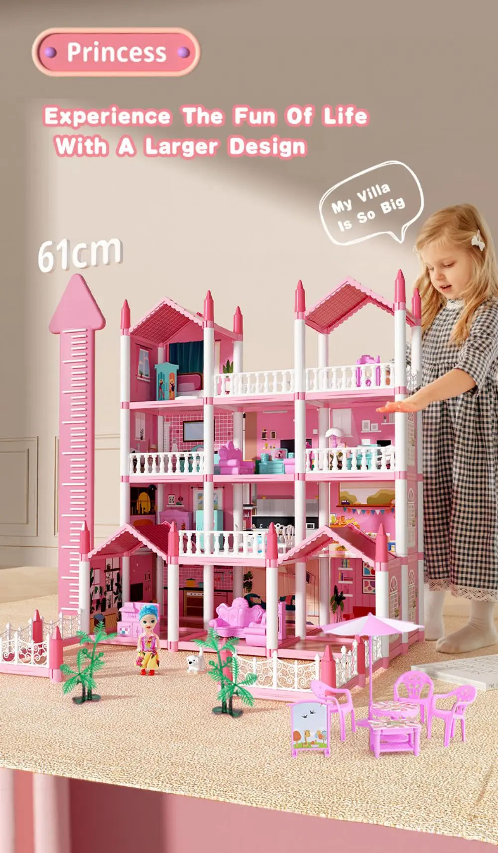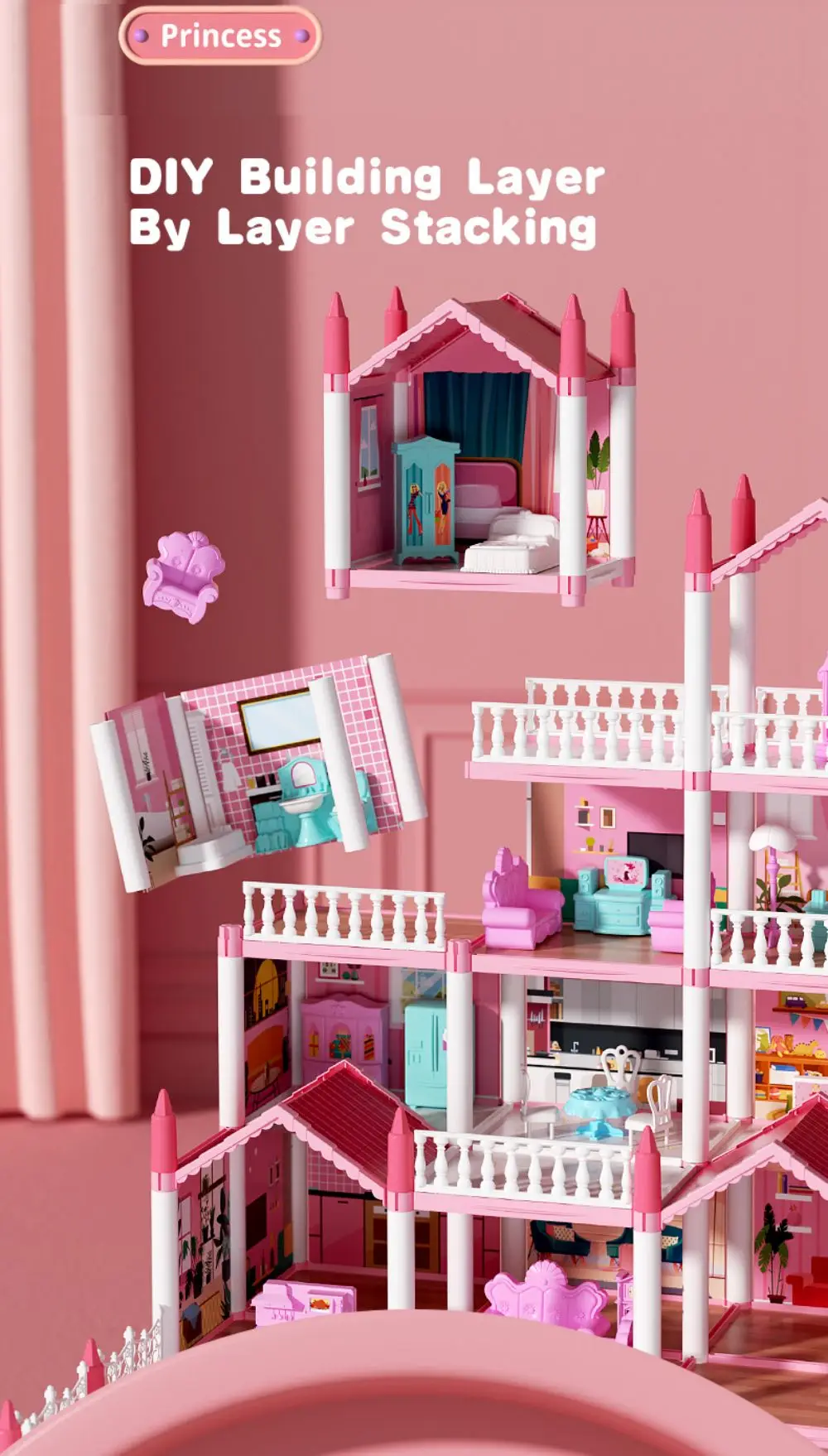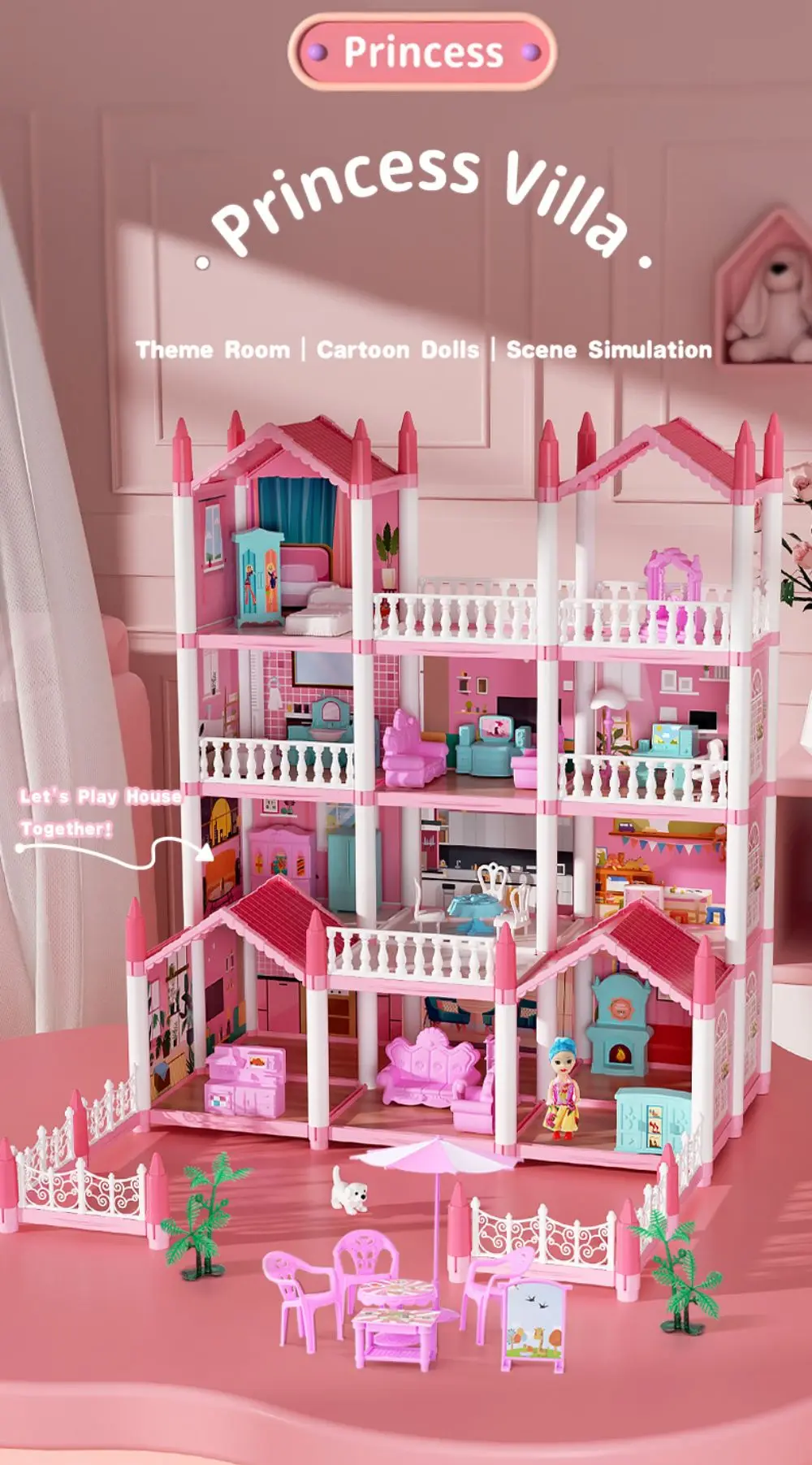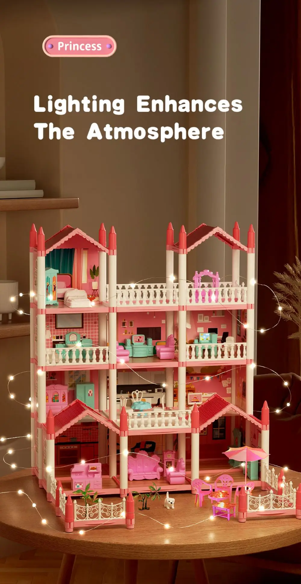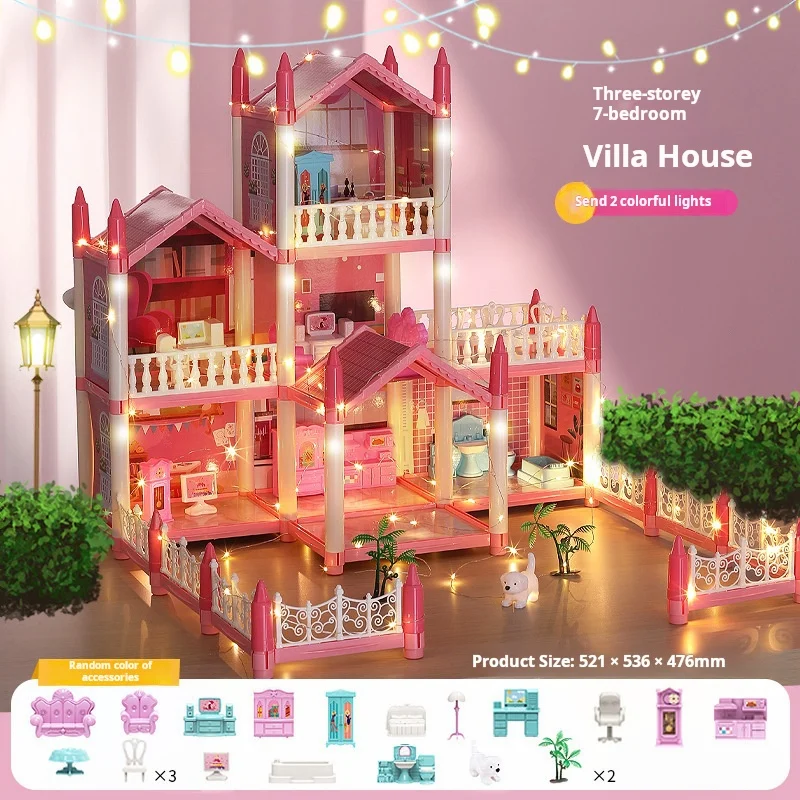 Top Selling Diy Assembly 3d Princess Castle Villa Children’s Play House Lighting Dollhouse Model Puzzle Girl Birthday Gift