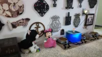 I love the little kitty trying to get out of the wall… I wouldn’t consider this kitty for the toilet… But it’s perfect next to my cat’s food dishes! It looks like it is trying to get out of my husband’s lab, which is behind this wall… I love it!!! !