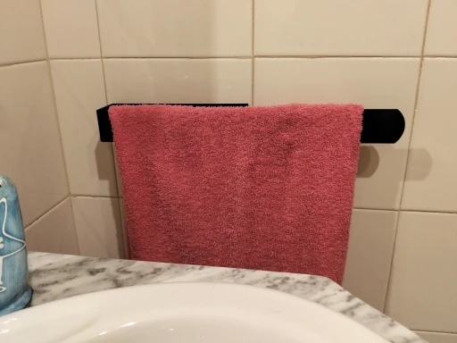 Good product for avoiding drilling into the tiles. Thanks to that square corner, it can be inserted into the corner of two walls and the towel can be easily passed towards the person. Nice matte color, in line with current trends.
