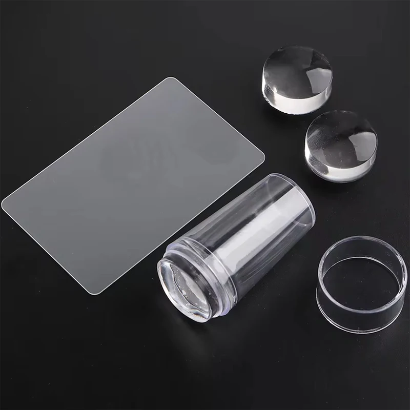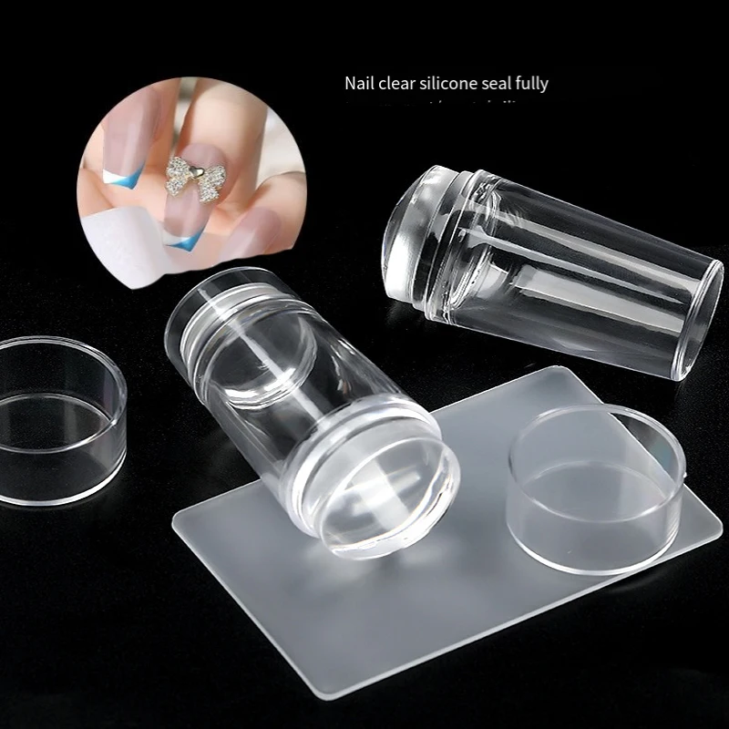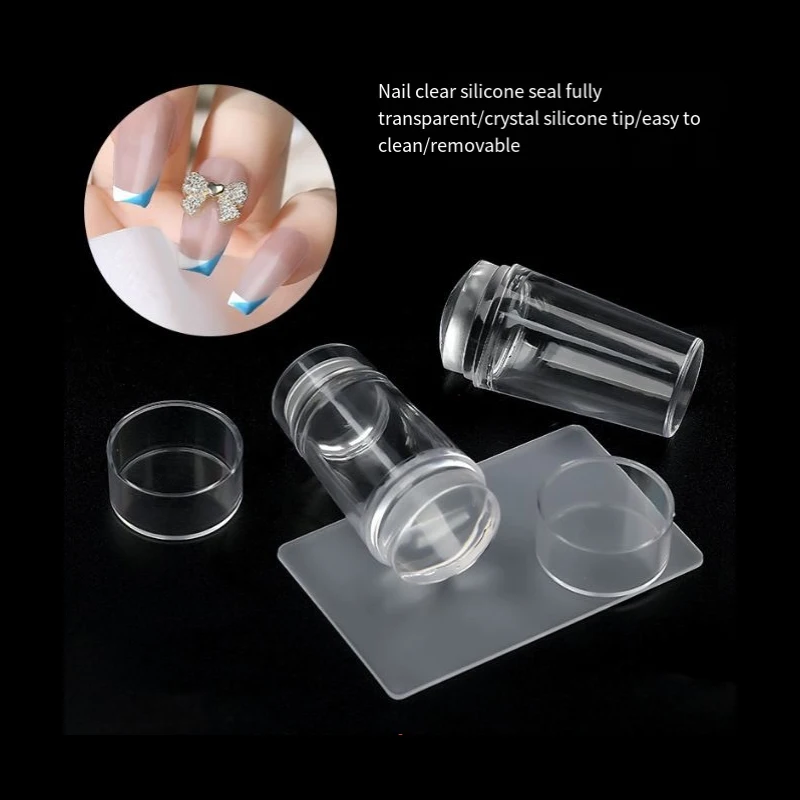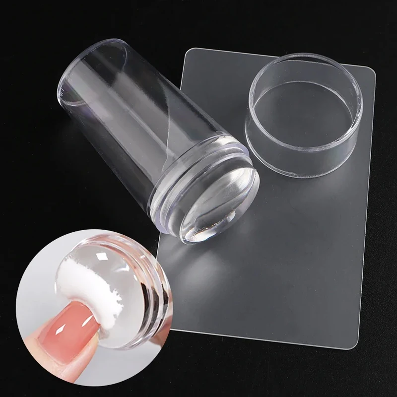 Transparent Nail Stamper with Scraper 2Pcs Jelly Silicone Head Stamp for French Nails Printing Nail Art Stamping Plate Manicure