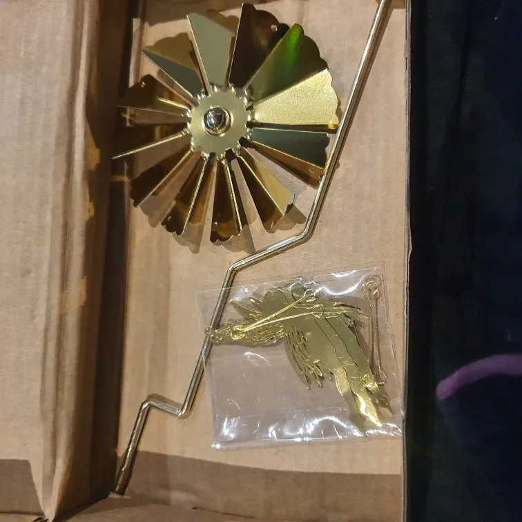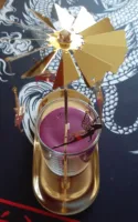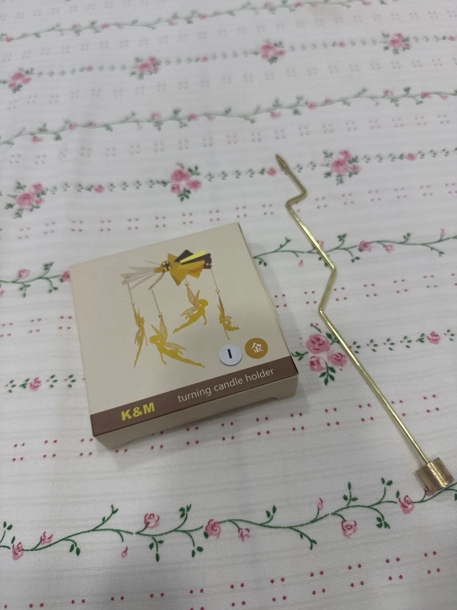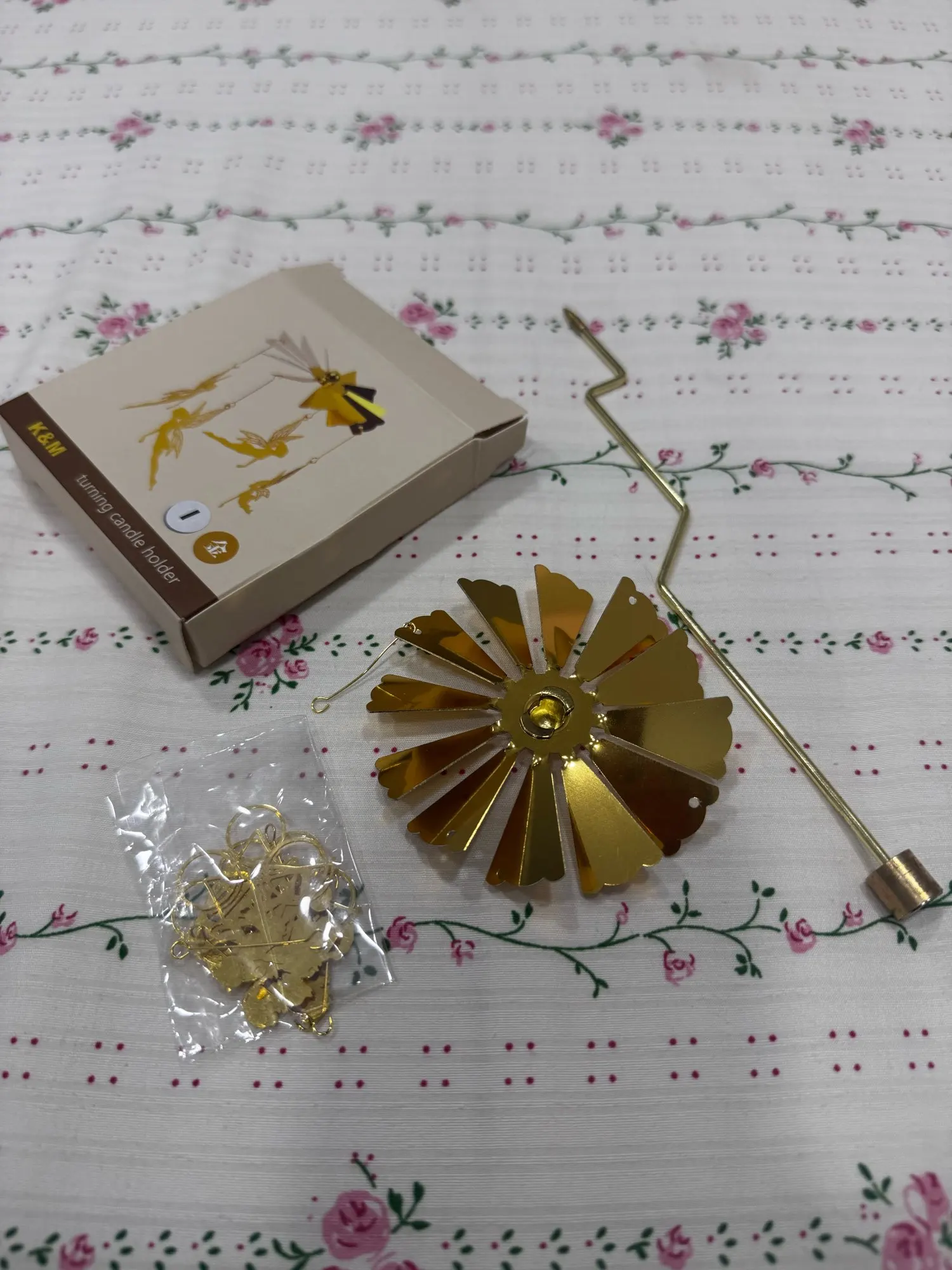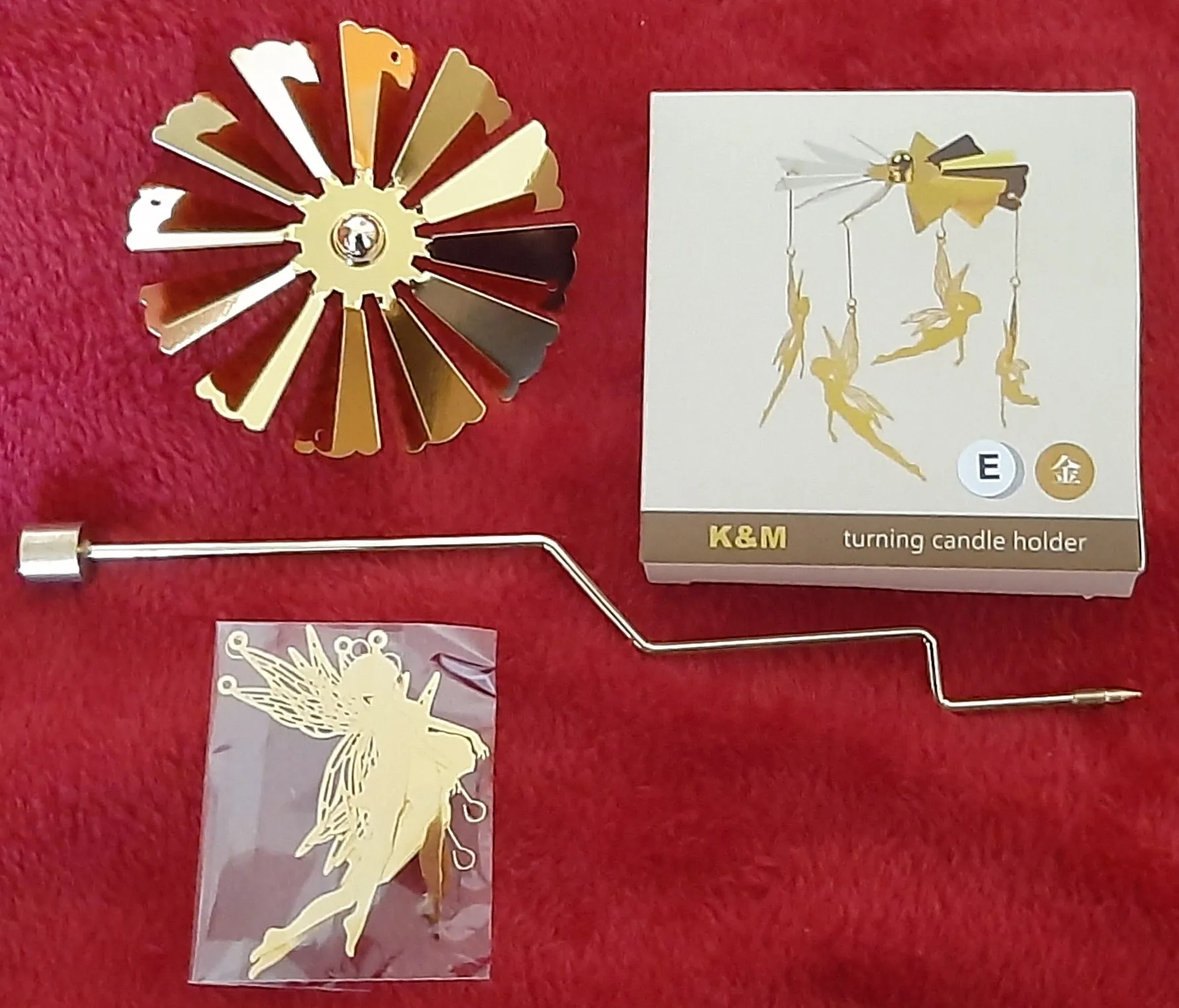 Exactly as described. The gold-plated candle holder looks very beautiful. The carousel spins well when the candle is burning. I really like this candle holder. I am very satisfied with this purchase.