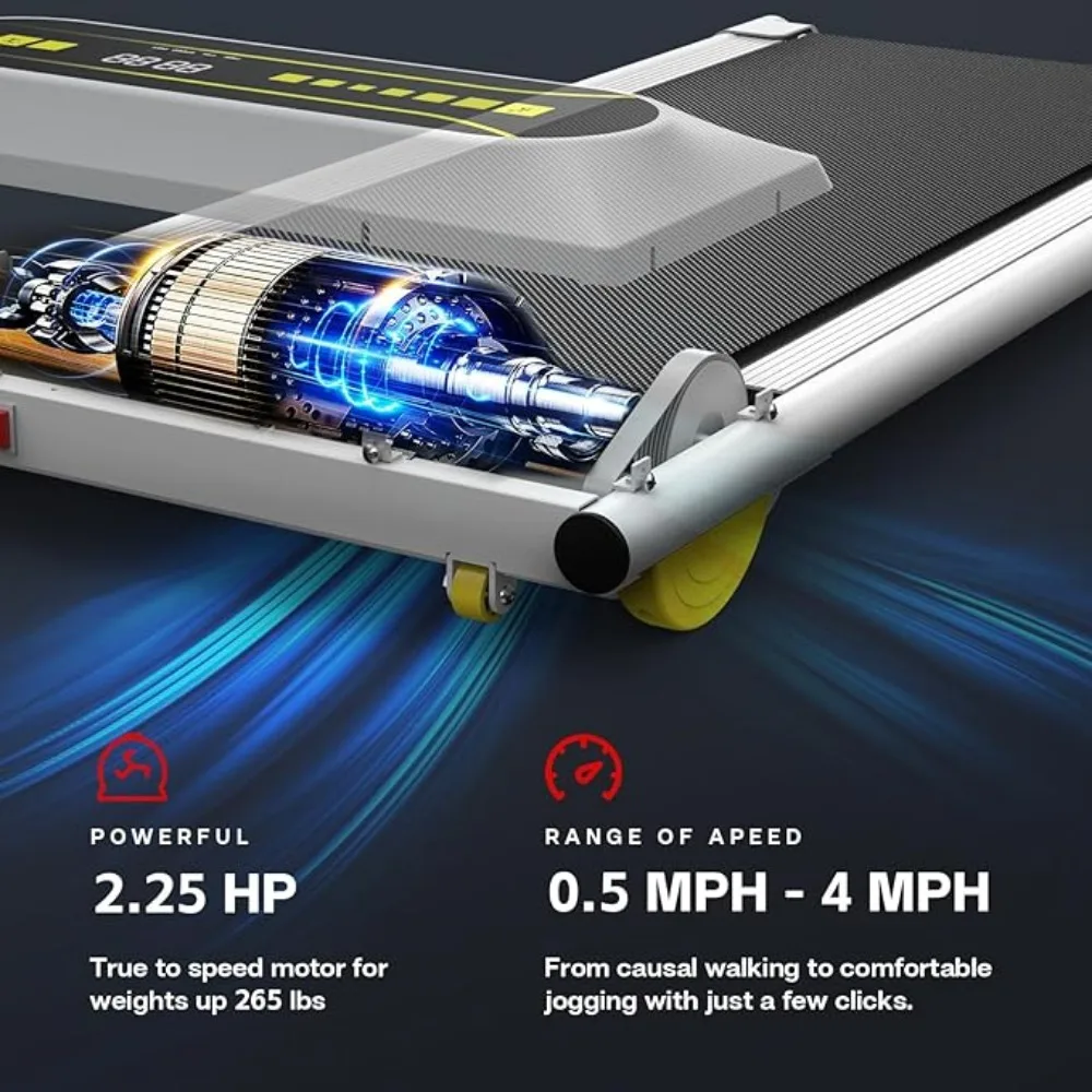 • Superior Performance: With a 265 LBS weight capacity and a powerful 2.25HP motor, this treadmill pad offers a smooth and efficient workout experience. The 0.5-4MPH speed range ensures you can customize your walking sessions to suit your fitness level.