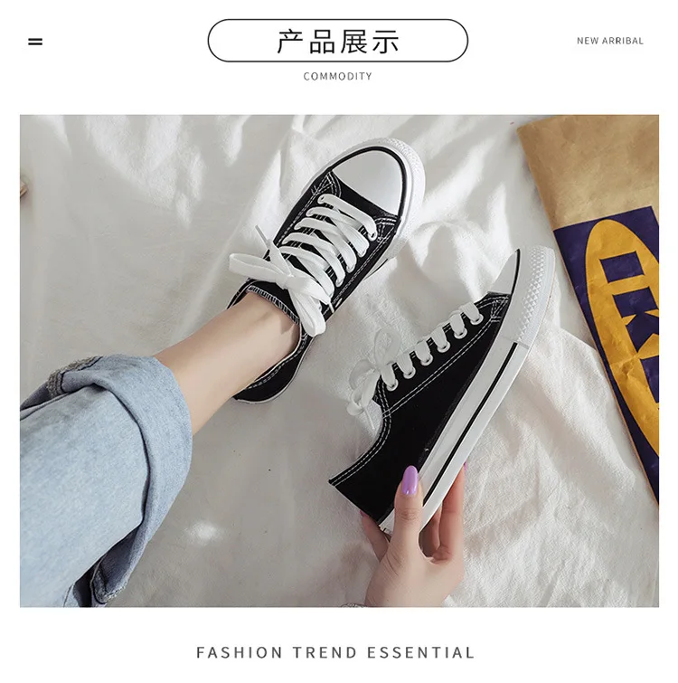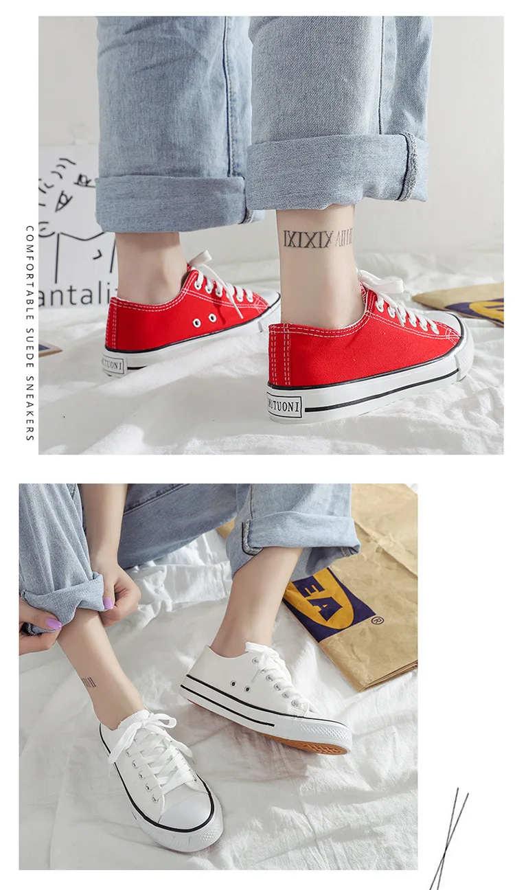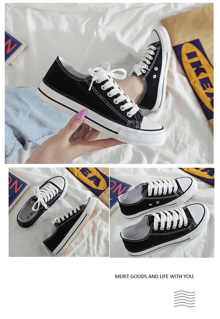 Trendy Korean Low Top Canvas Shoes for Women Classic Evergreen Student Sneakers Retro Harajuku Couple Shoes