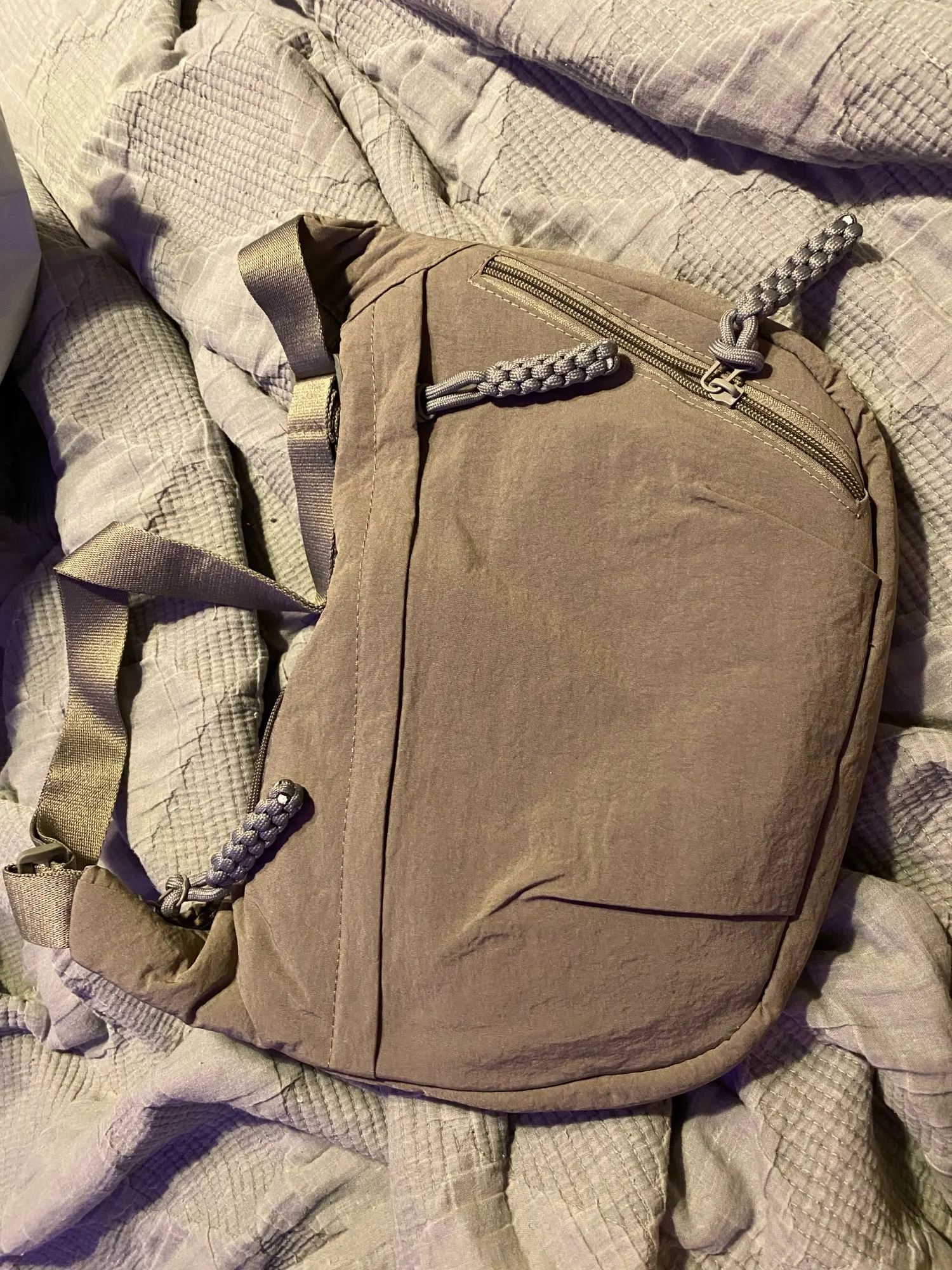 Very nice and comfortable bad. I like it a lot. Inside pockets are too simple. Things can’t be organized. I wish they have zipper inside. And the strap has buckle to easily remove and hook other items like my bottle water to free my hands sometimes. Material is polyester and easy to clean. Don’t like the outside vertical zipper pocket though. It’s too shadow and weird position. Might get unzipped easily and lose itemb in there enough it isn’t a big pocket.