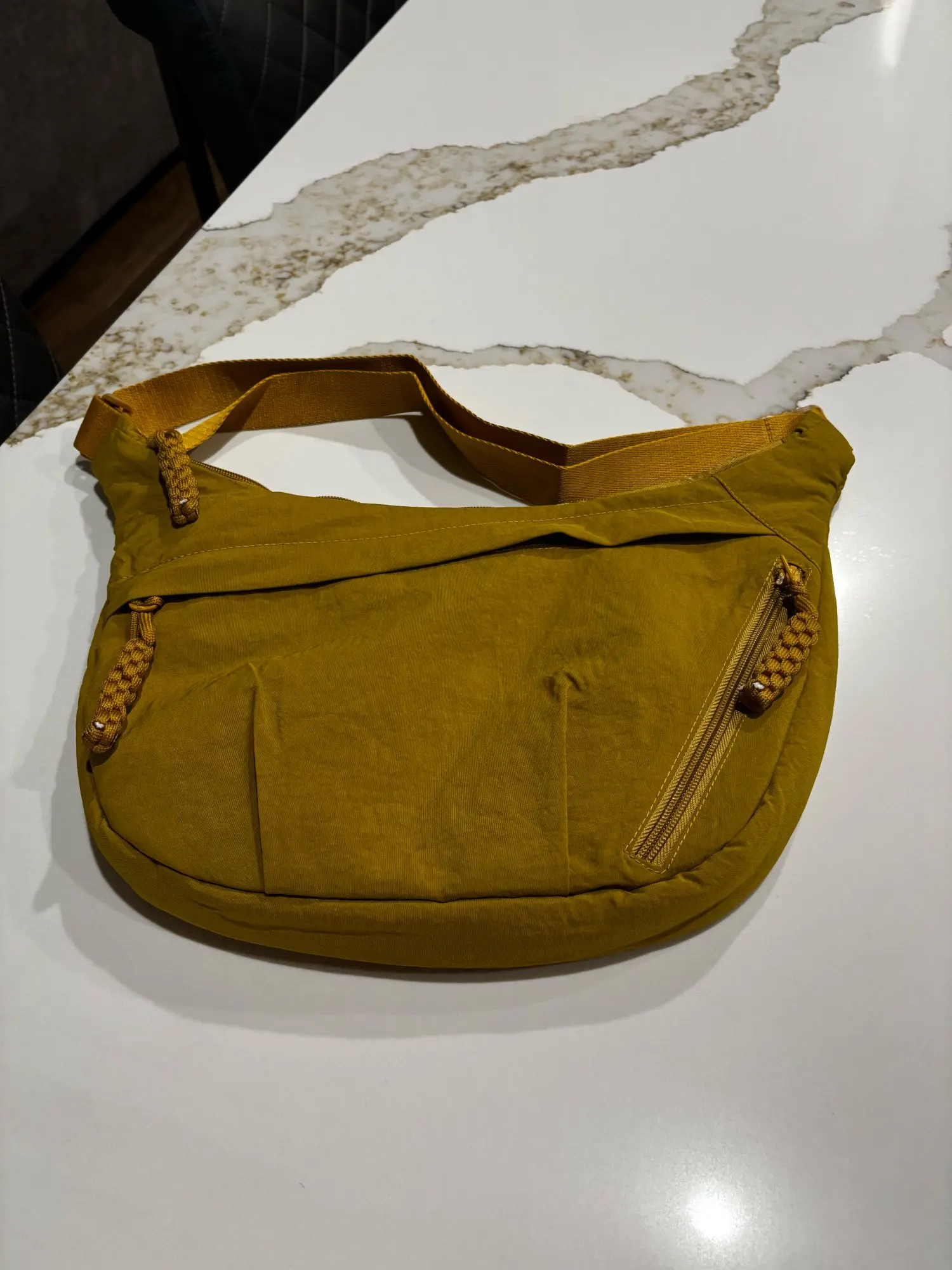 This is a cute little everyday bag- if you aren’t expecting to carry a lot with you. It does have a little split in the middle to separate things, and a little interior pocket. I love it!
