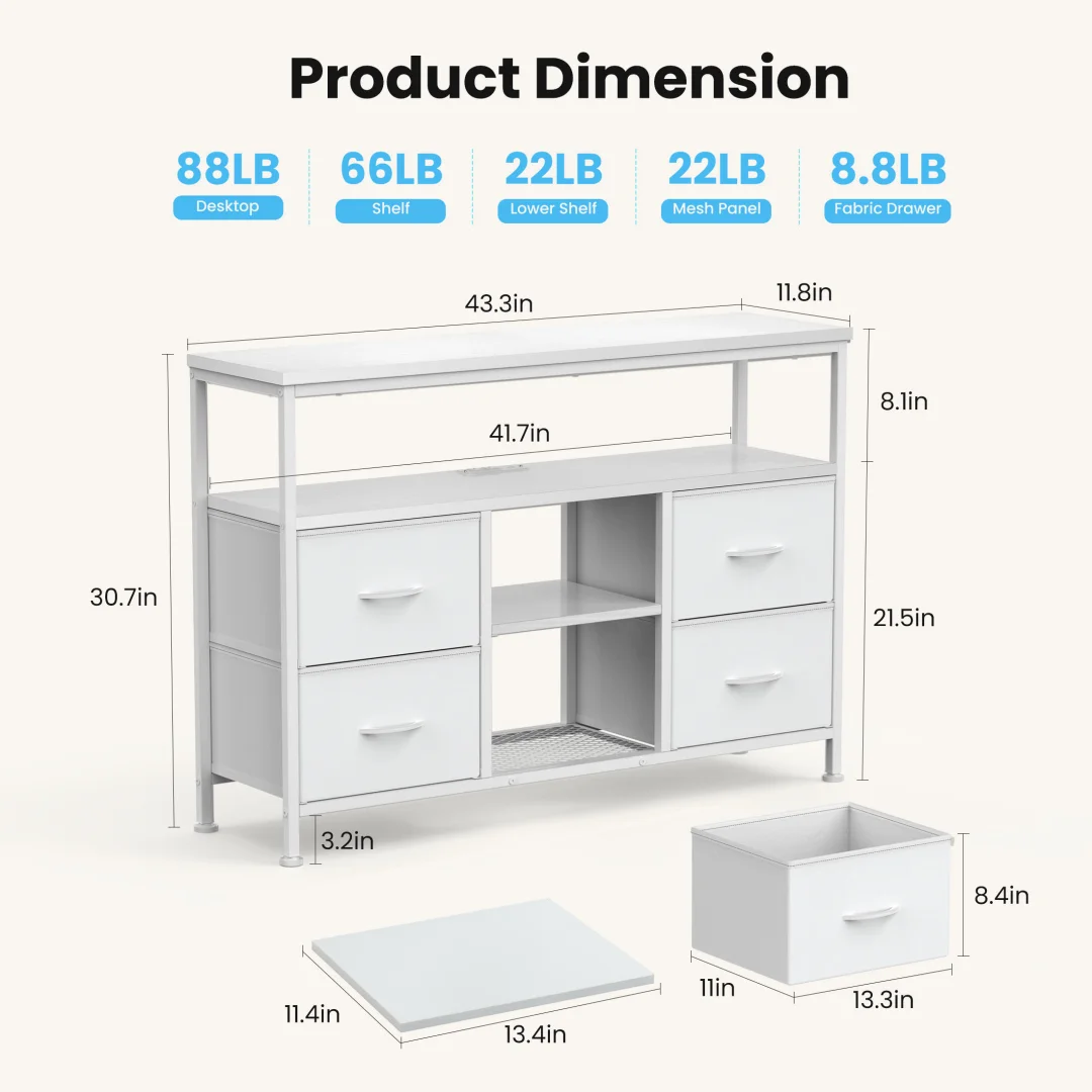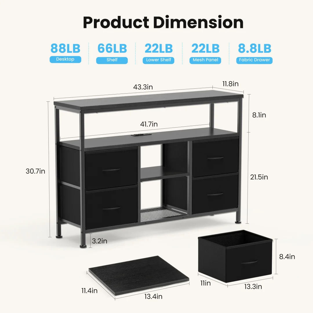 - Spacious Storage: Offers flexible storage with 4 fabric drawers, a removable particle board middle shelf, and a reinforced metal mesh bottom shelf. Perfect for organizing media accessories, game collections, or speakers.
