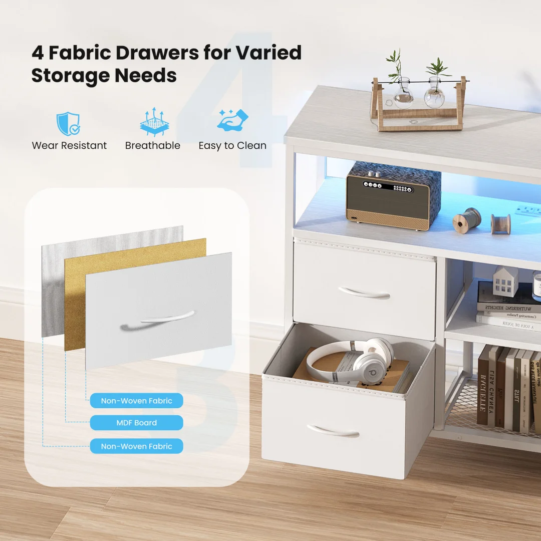 TV Stand, 4 Drawers, With LED Lights And Power Sockets, 50-inch TV Living Room Furniture, With Open Shelves And Adjustable Feet