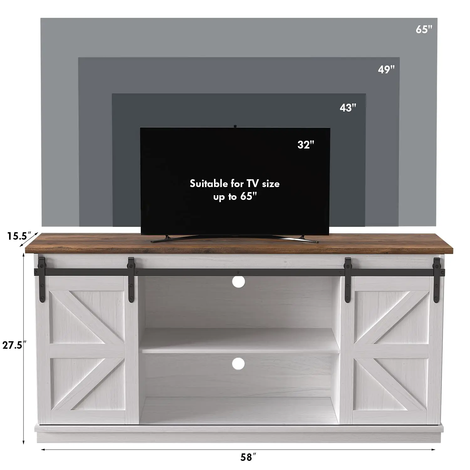 TV Stand for 65 Inch TV, Entertainment Center with Storage Cabinets and Sliding Barn Doors, Mid Century Modern, Customized