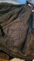 Nice cozy blanky…yeah i sound a little g** but i’m not. It’s a nice big blanket that is soft as a babies butt, i can not and will not complain at all. Hey it’s not very thick but daughters fight over it because they like it so much (i’ll buy another but right now the older one is quick and all but younger one has some insane power and pummels her if she gets a hold it’s fun to watch)