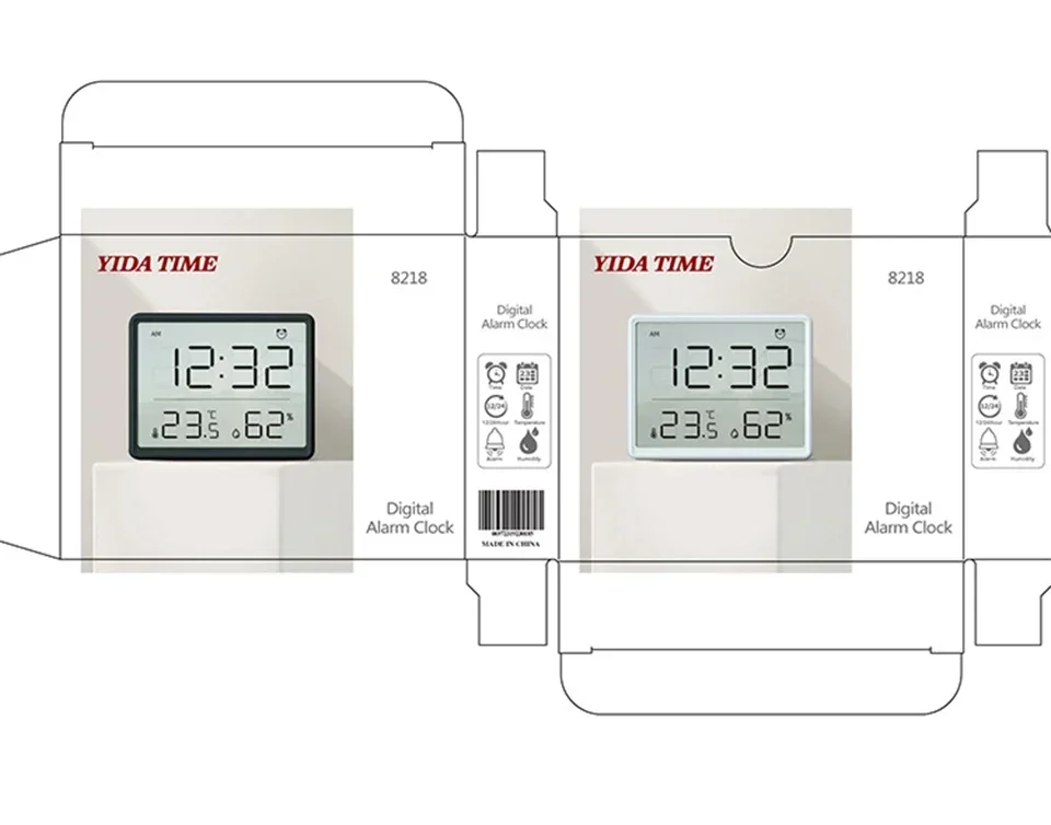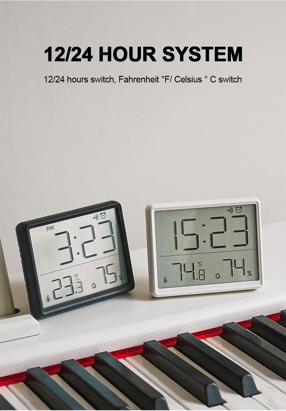 It is a digital clock that is thin and light in thickness. Time can be changed to 12 hours and 24 hours, it is good to see on one screen, up to temperature and humidity. There is a small magnet on the upper left and right, so it is convenient to use it on the refrigerator.