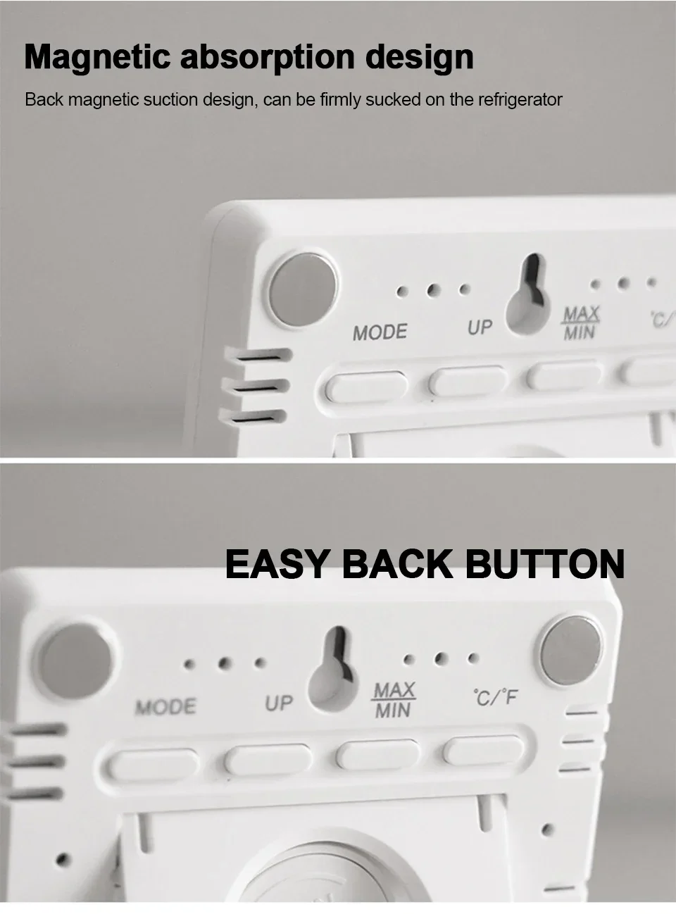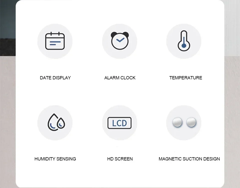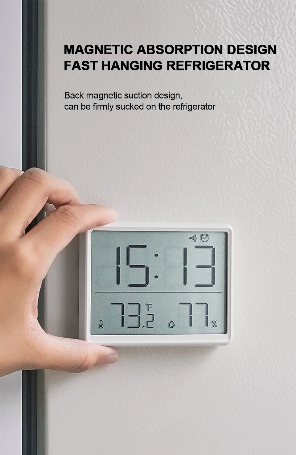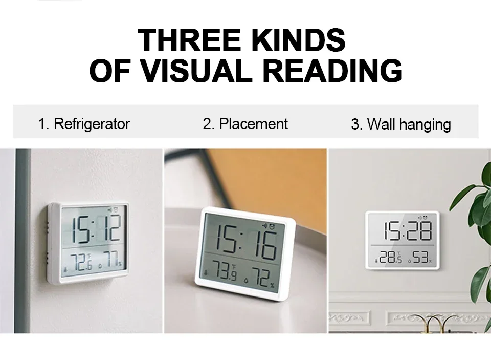 Design simple, time, temperature, humidity It’s easy to see at a glance ~ Most of all, it has a magnet attached, so it is firmly attached. I put it on the kitchen tower hanger under the head of the kitchen sink, and it looks good at a glance and I am satisfied ~
