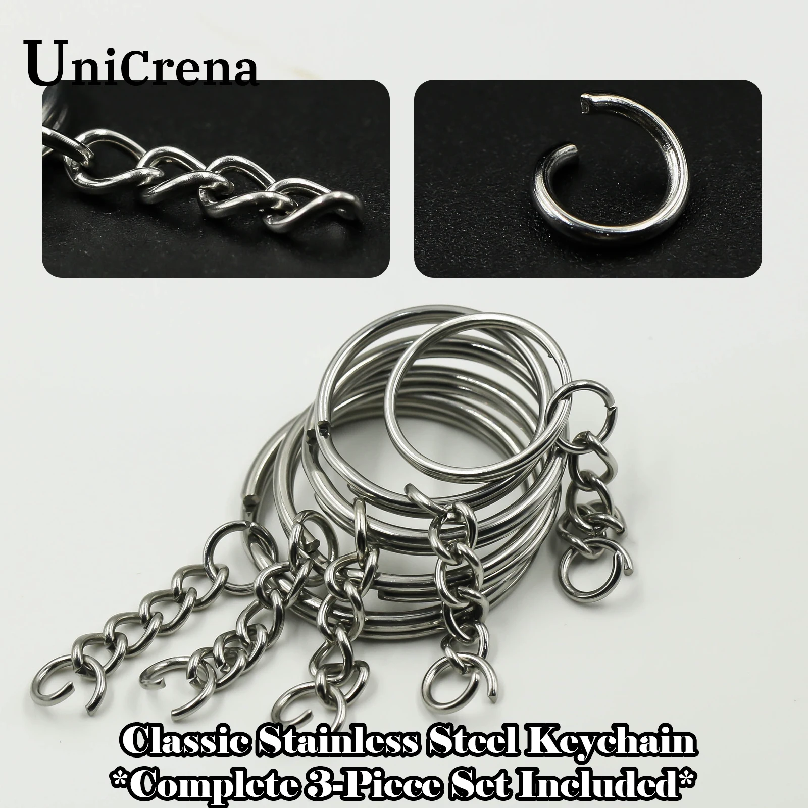 Every component of this keychain set is crafted from solid stainless steel, ensuring superior resistance to rust, corrosion, and tarnishing. Unlike coated or alloy alternatives, the entire assembly—the classic round split ring, the durable 4-link connector chain, and the open jump ring—is built to maintain its strength and appearance through daily use and in all weather conditions, providing reliable performance for years to come.