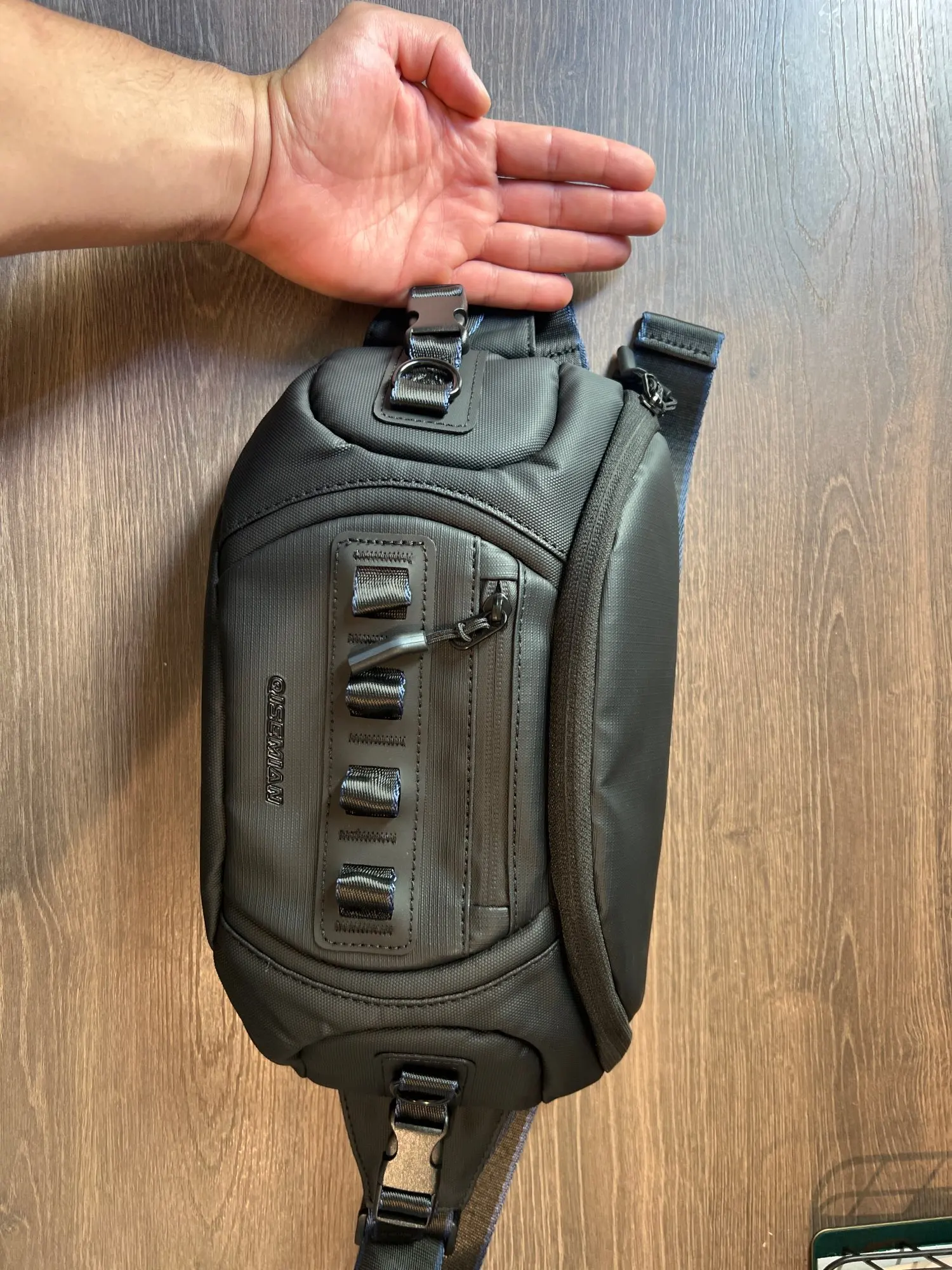 The strap should be placed higher up, not exactly in the middle, to fit better on the body. The workmanship is very good. The capacity is also fine.