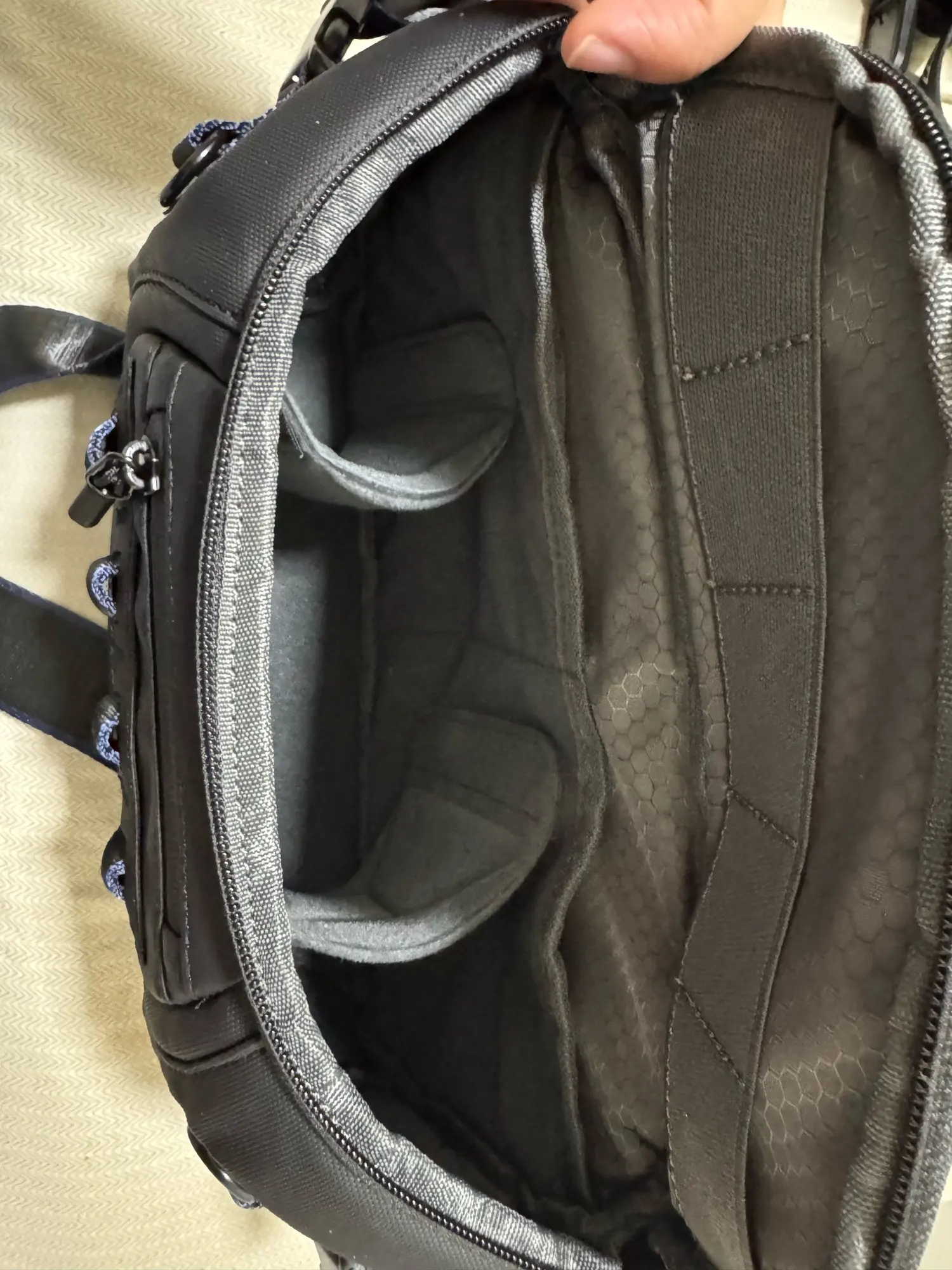 Perfect space, the divisions can be moved according to your needs. It feels like good quality. I will use it for a Canon R50. It arrived earlier than expected.