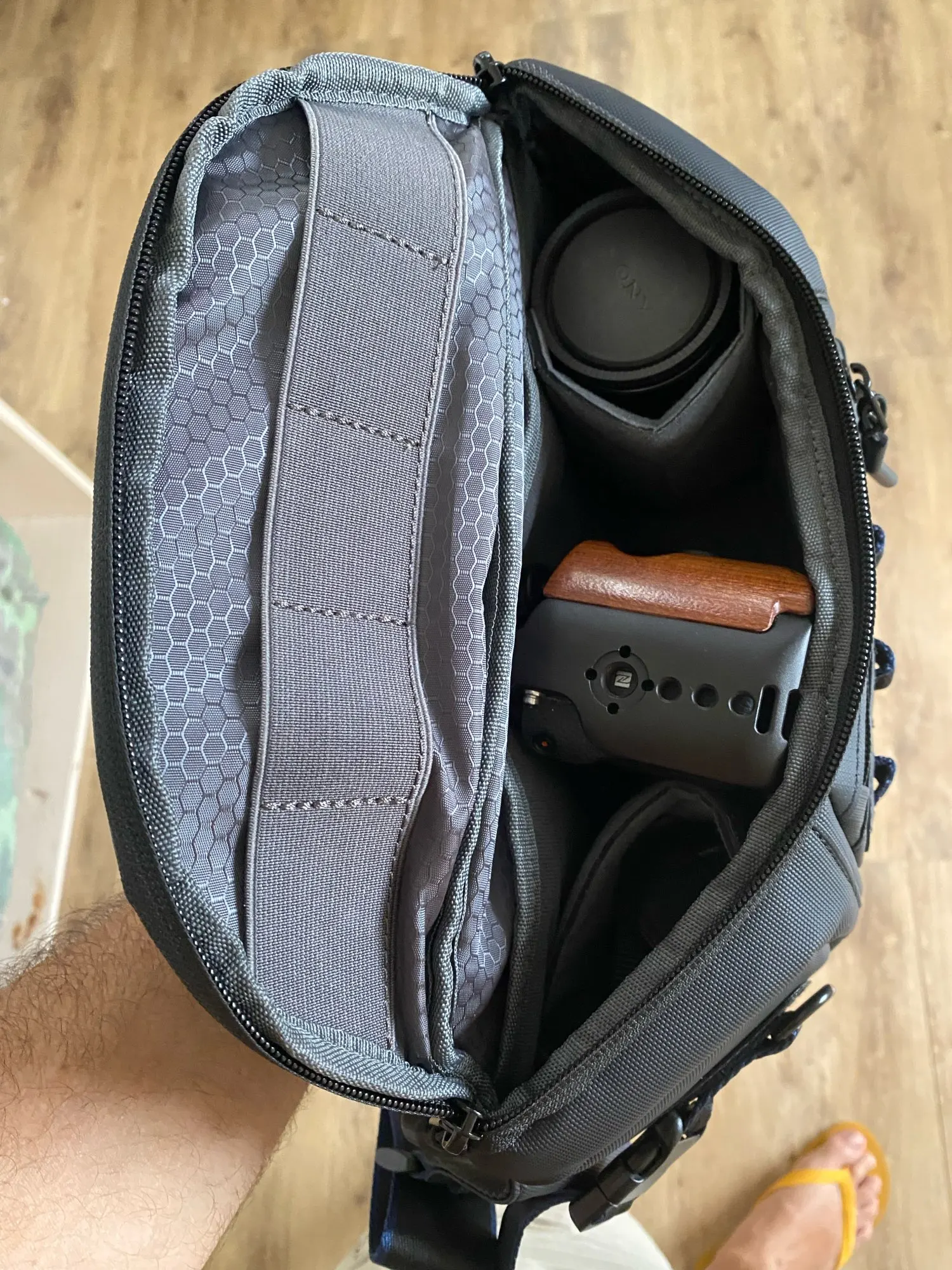 Well-made and practical design, comfortable to wear. A bit narrow for my camera, which isn’t large.