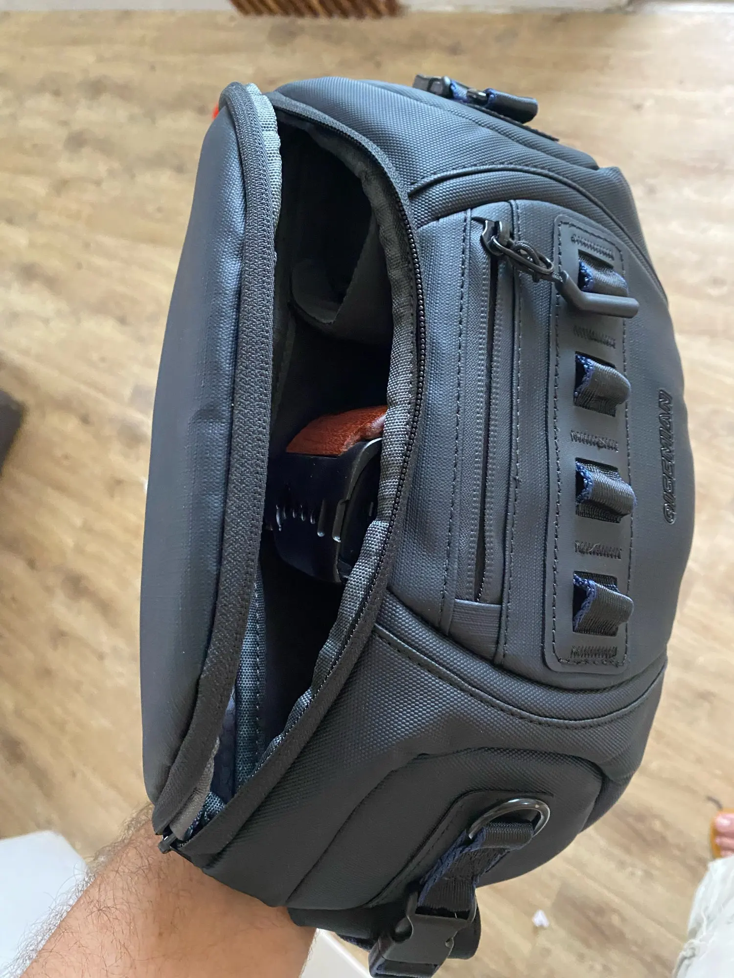Excellent quality, fits well, the materials feel strong and robust, good stitching, spacious. The only thing missing is improving the strap to include a shoulder pad.