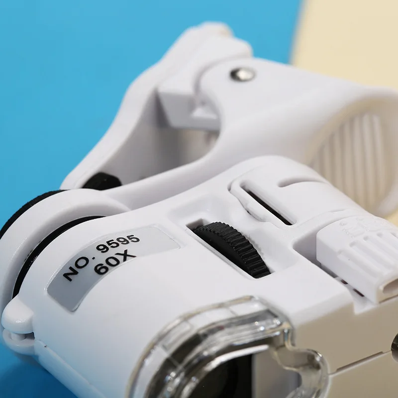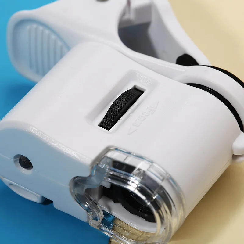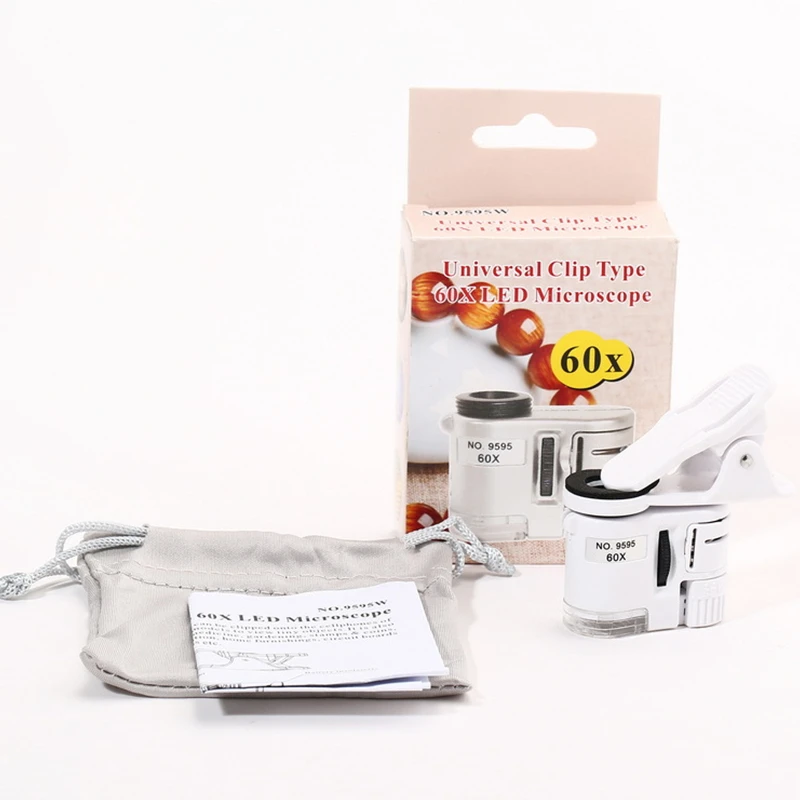 Universal Clip Microscope 60X LED Jewelry Magnifying Glass Focusing Adjusted Pocket Microscope with Cell Phone Clip UV Light