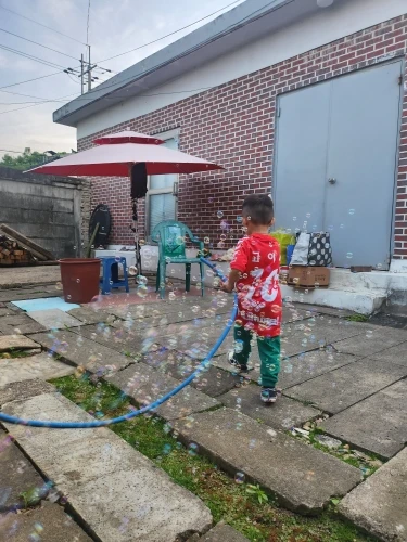 I really like it. It’s good to be able to use it on the floor, and although the droplets are small, they come out quite a bit, making it good for playing with the baby. I’ve used it about two times, but there doesn’t seem to be any issue with soap bubbles leaking.